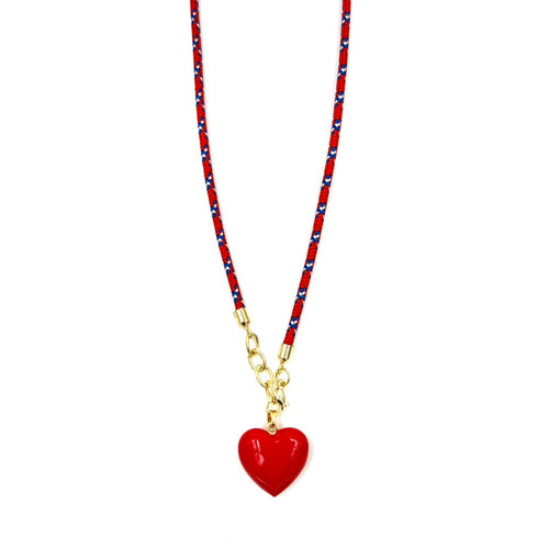 Ashley Gold Stainless Steel Gold Plated Cord Design Red Puff Heart Charm Necklace