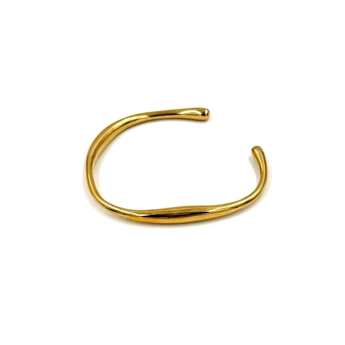 Ashley Gold Stainless Steel Gold Plated Wavy Design Open Bangle Bracelet