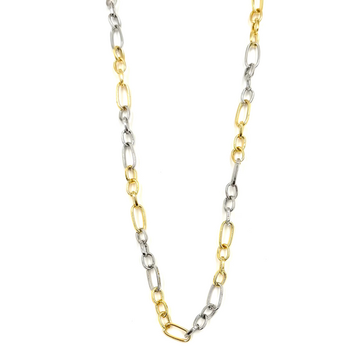 Ashley Gold Stainless Steel Circle and Oval Oversized Link Chain Two Toned Necklace