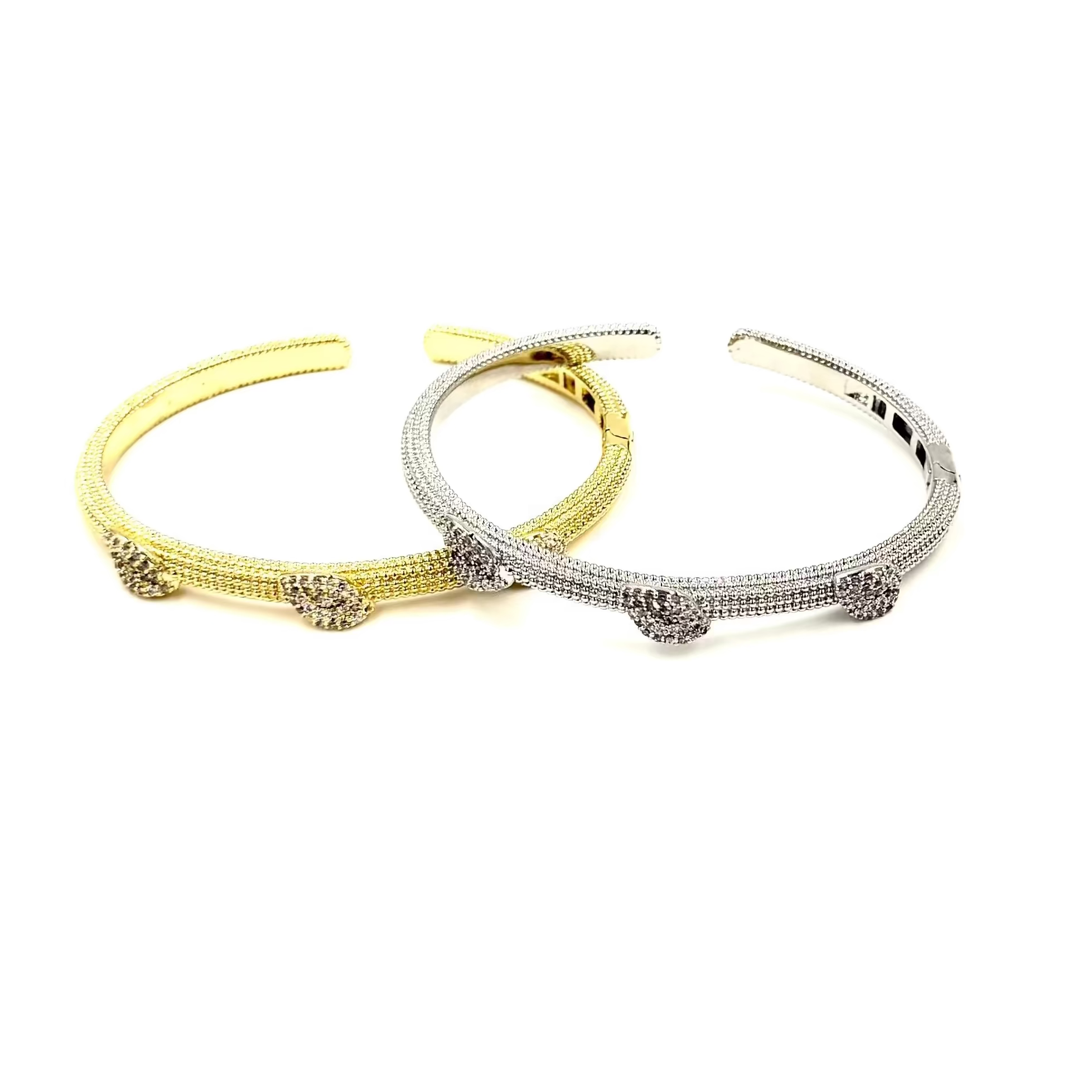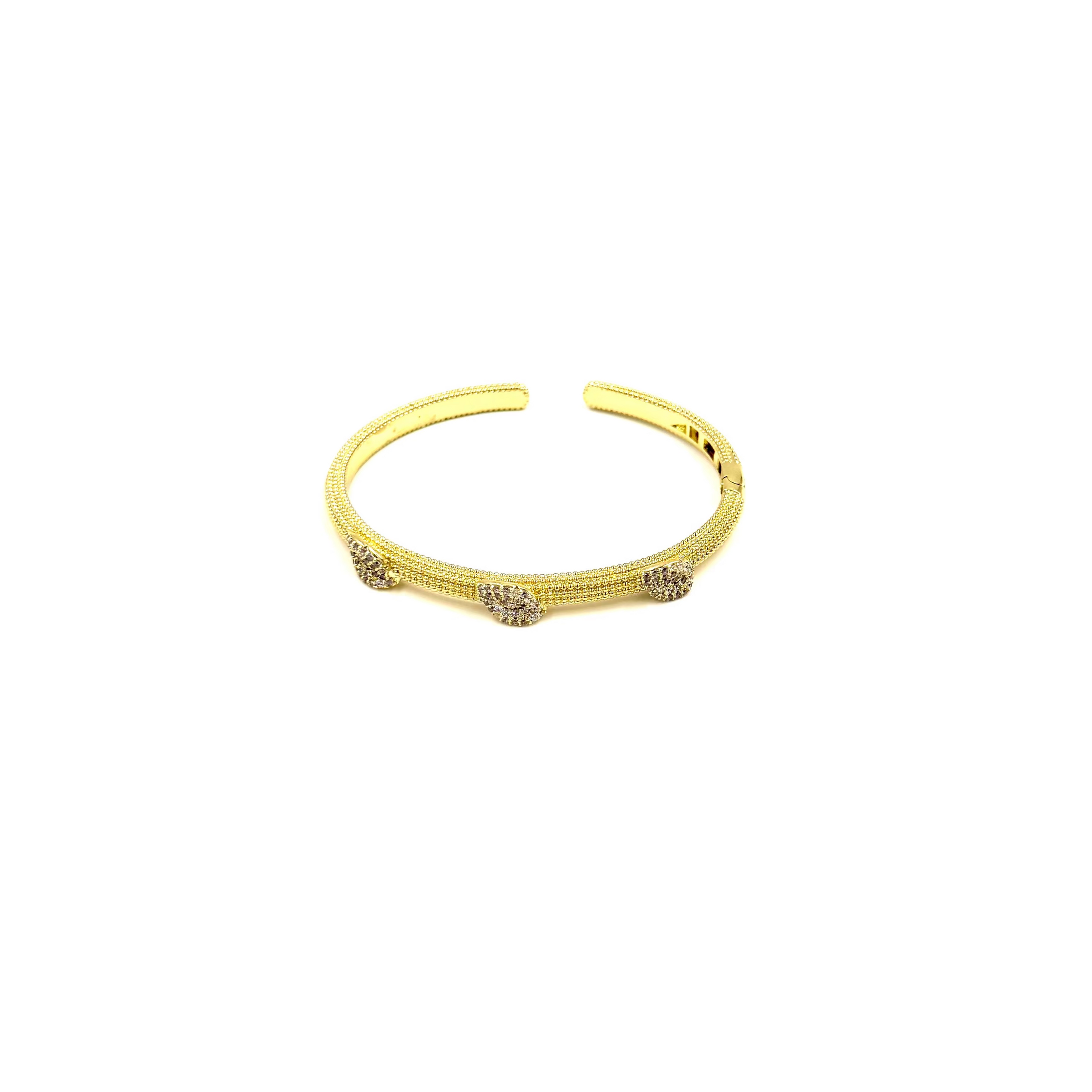 Ashley Gold Stainless Steel Open Bangle 3 Design CZ Bracelet