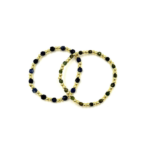 Ashley Gold Stainless Steel Gold Plated Alternate Semi Precious Stone Beaded Stretch Bracelet