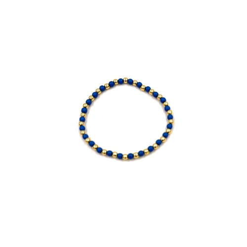 Ashley Gold Stainless Steel Gold Plated Alternating Enamel Navy Ball Beaded Stretch Bracelet