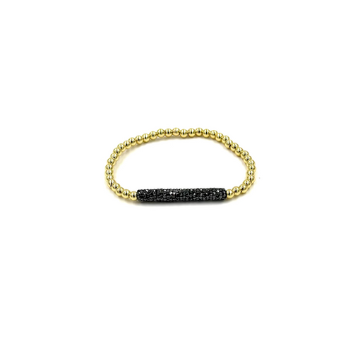 Ashley Gold Stainless Steel Gold Plated Black CZ Bar Design Stretch Beaded Ball Bracelet