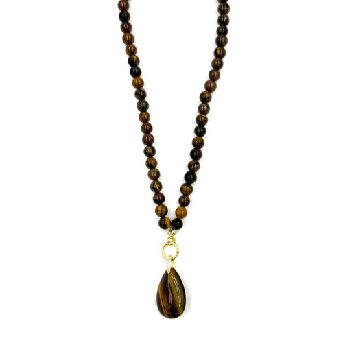 Ashley Gold Stainless Steel Gold Plated Brown Semi Precious Beaded 1 Teardrop Charm Necklace