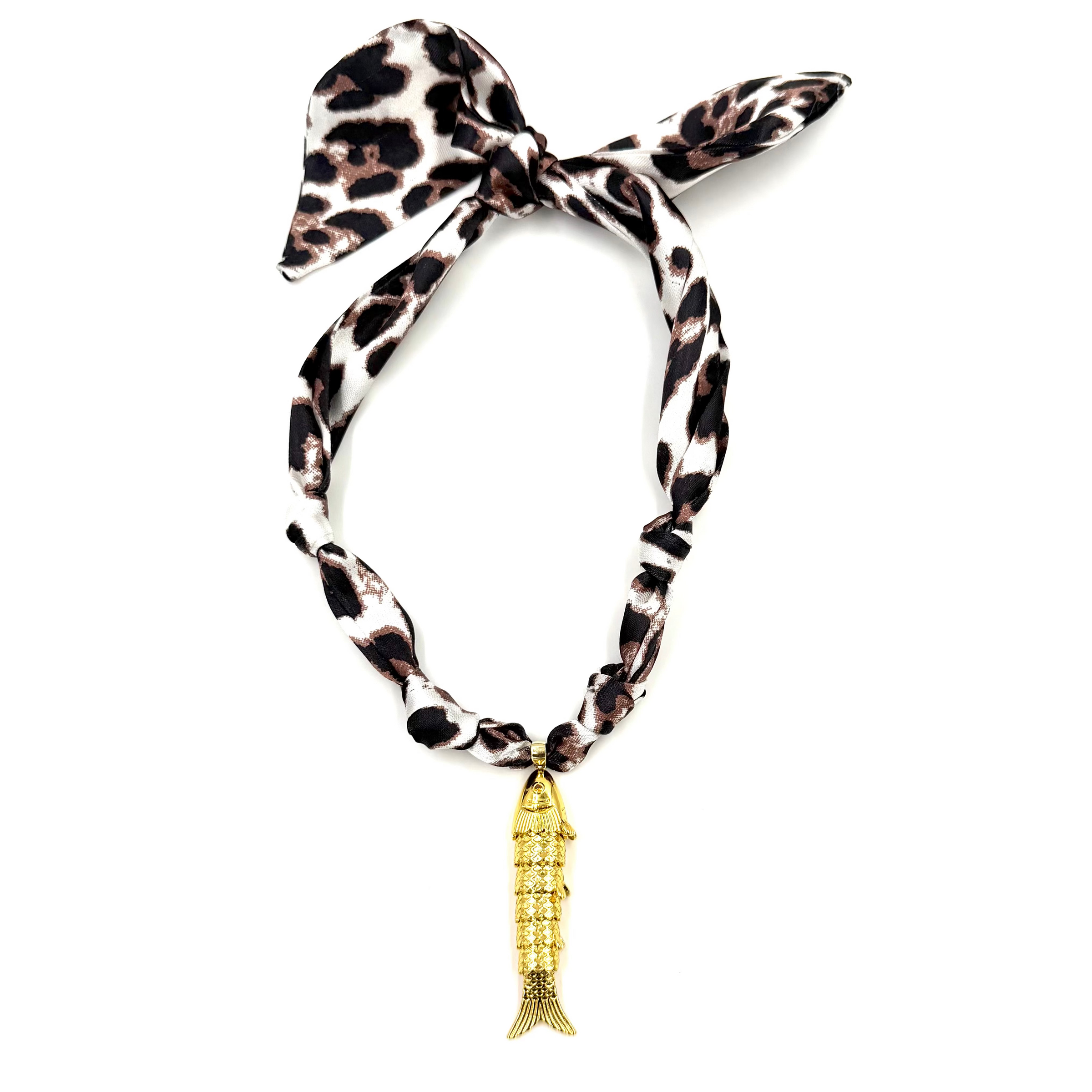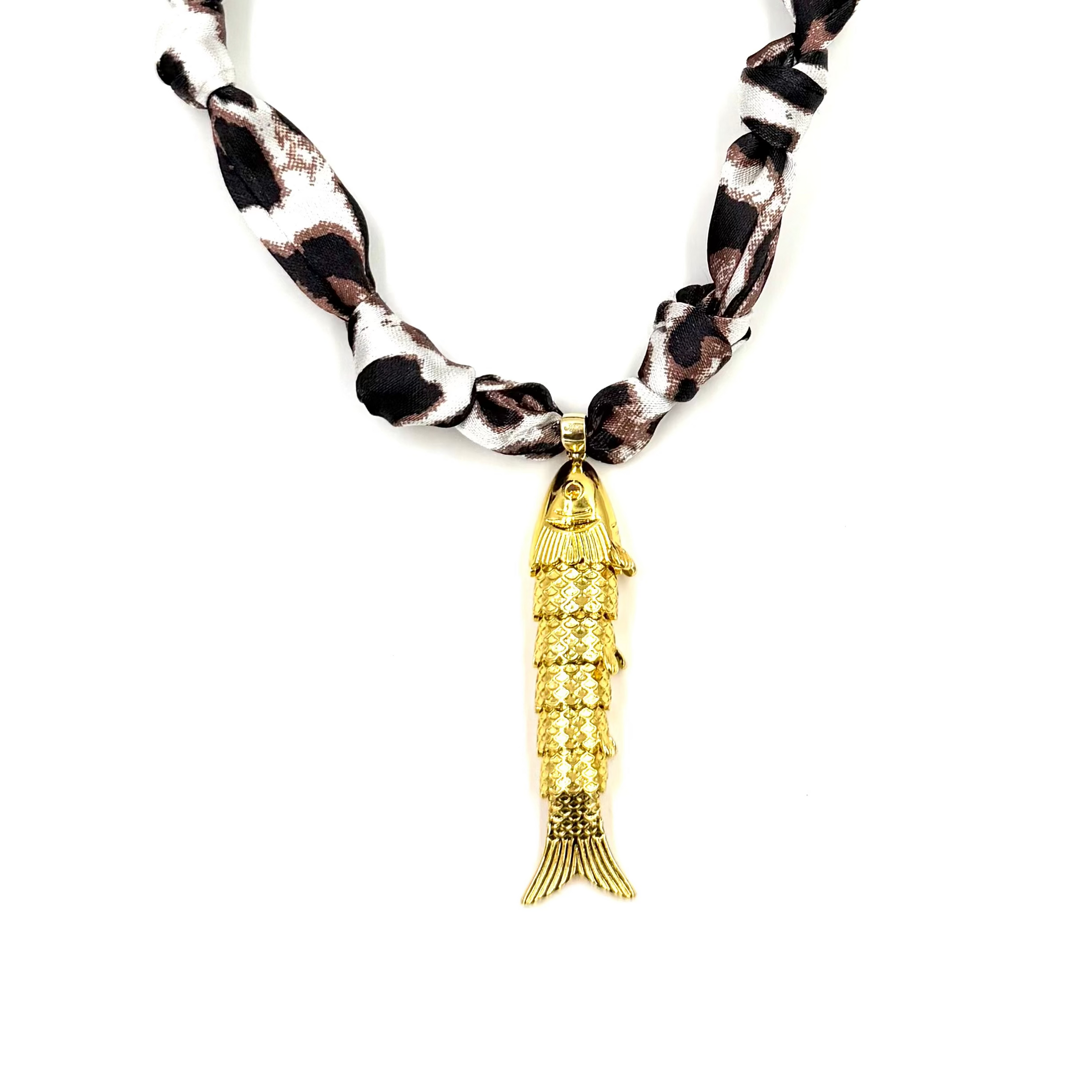 Ashley Gold Stainless Steel Gold Plated Silk Scarf Fish Pendant Necklace