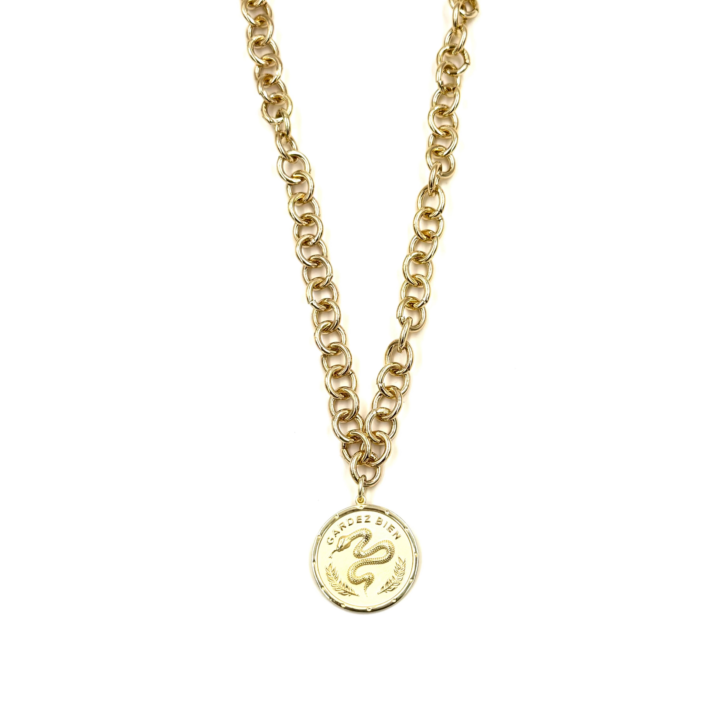 Ashley Gold Stainless Steel Gold Plated Snake Design Pendant Open Link Necklace