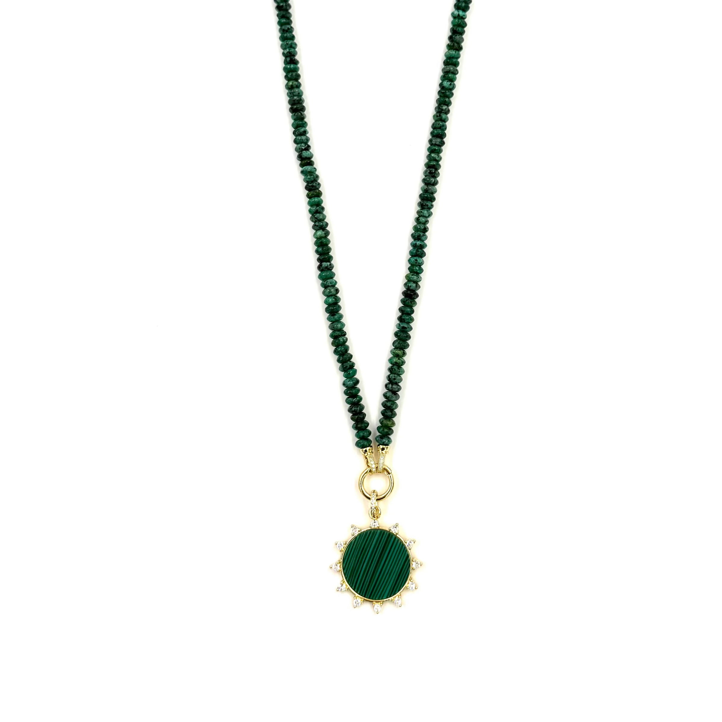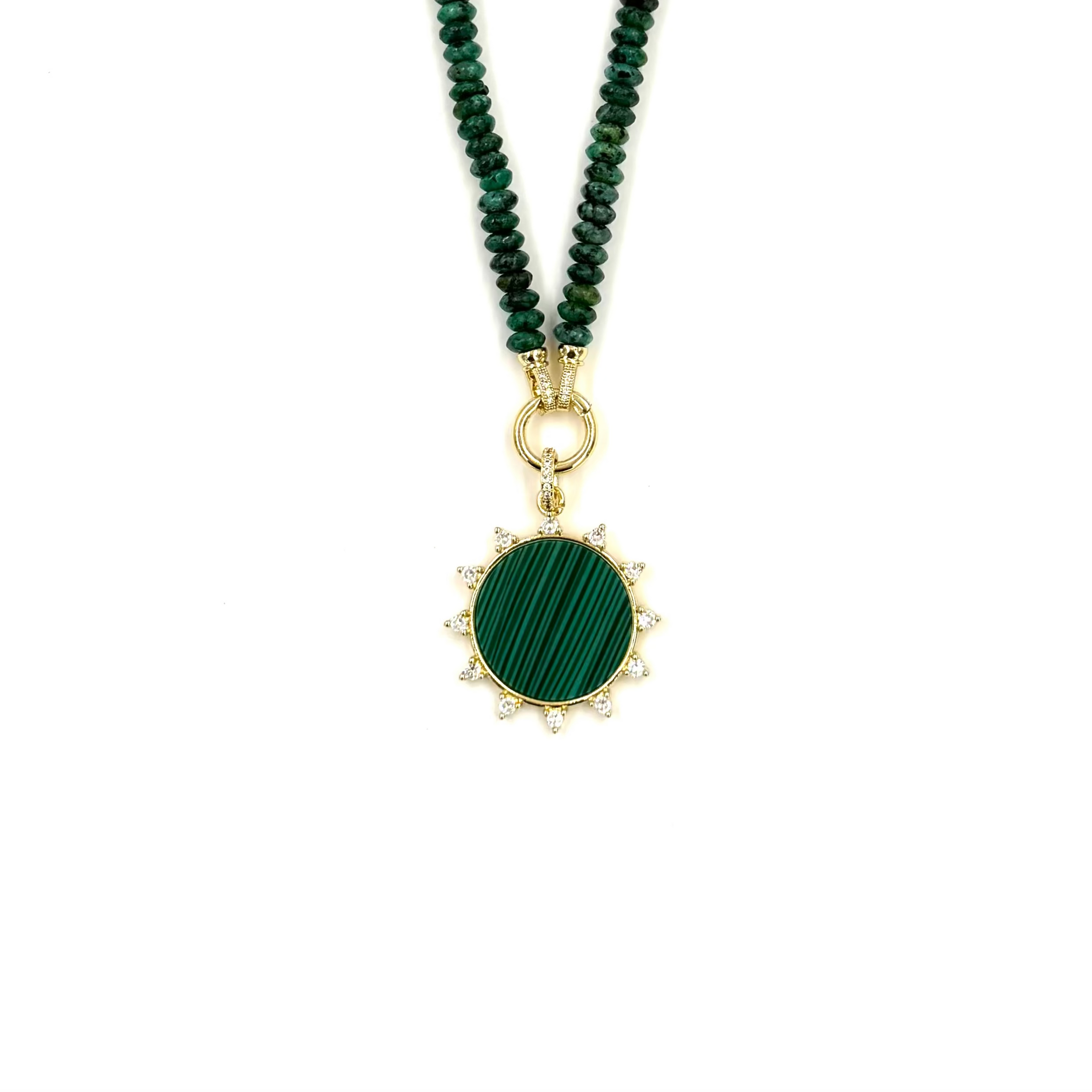 Ashley Gold Stainless Steel Gold Plated Semi Precious Donut Shaped Beaded Chain With Circle Enamel Pendant Necklace