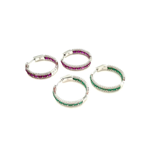 Ashley Gold Stainless Steel Inside/Outside Colored CZ 1" Diameter Hoop Earrings