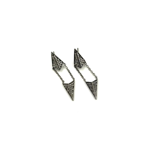 Ashley Gold Sterling Silver Gunmetal Double Drop Triangle CZ Earrings