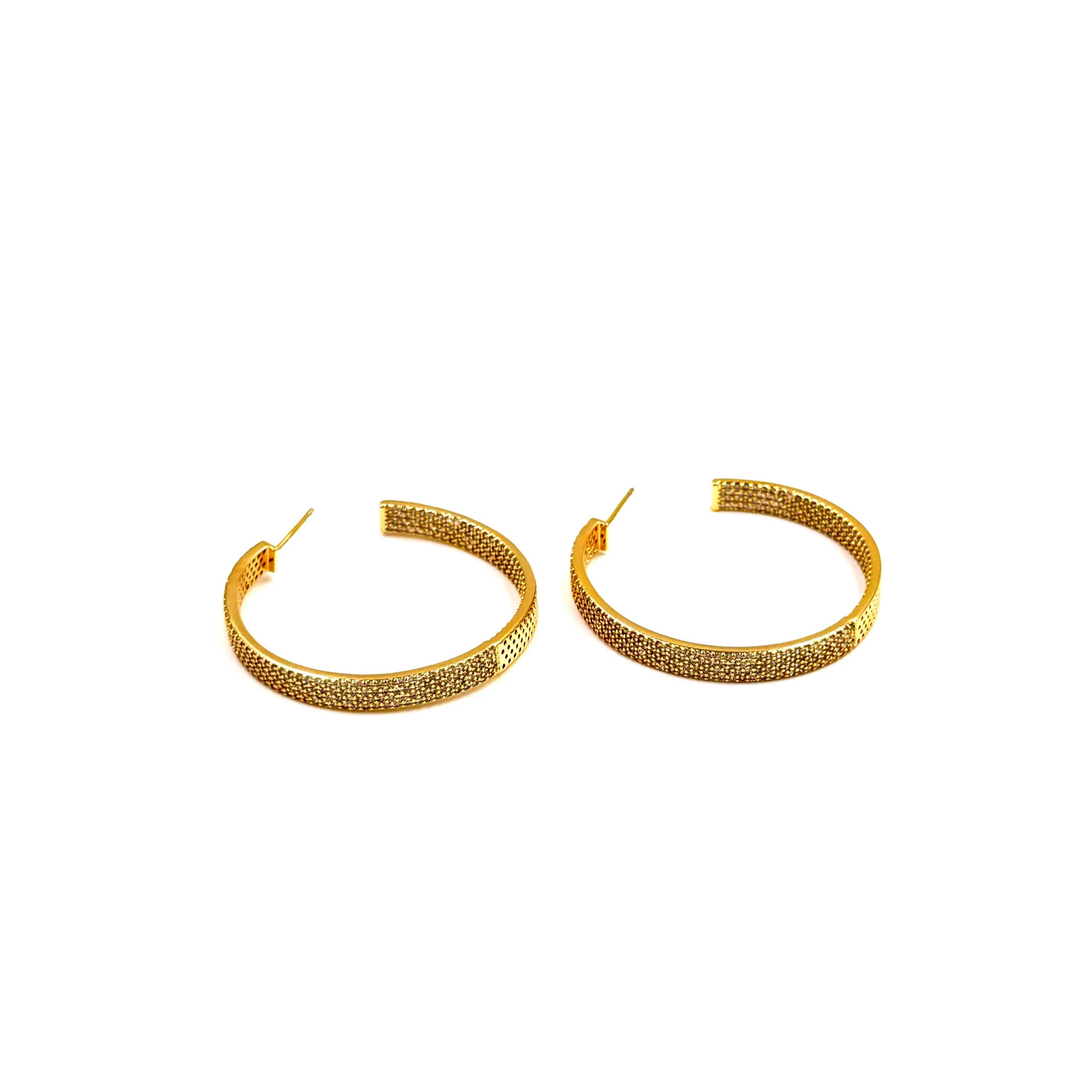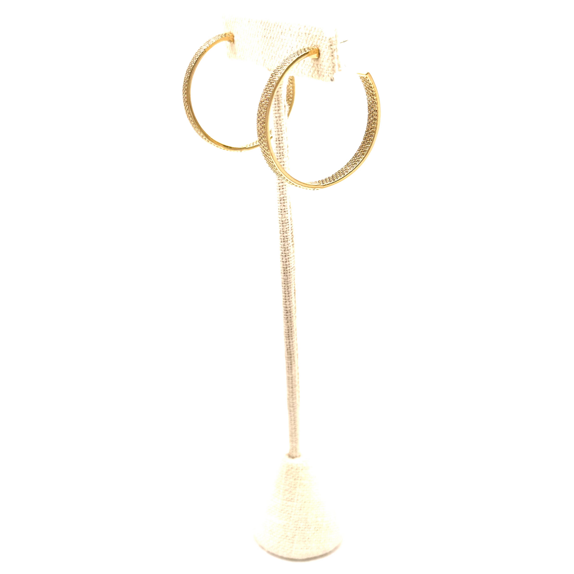 Ashley Gold Stainless Steel Gold Plated CZ Inside/Outside Post Hoop Earrings