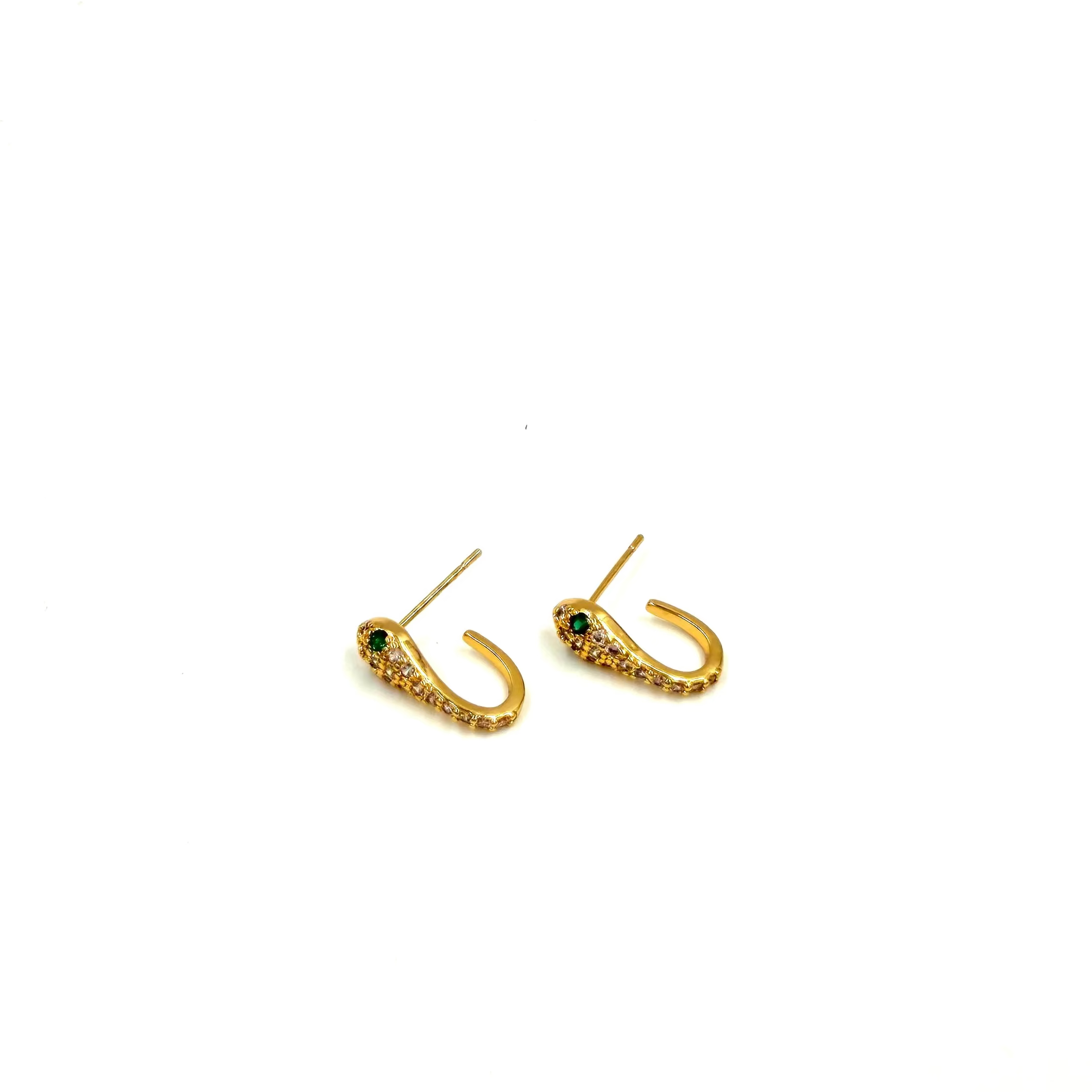 Ashley Gold Stainless Steel Gold Plated CZ Snake With Emerald CZ Eye Hoop Earrings