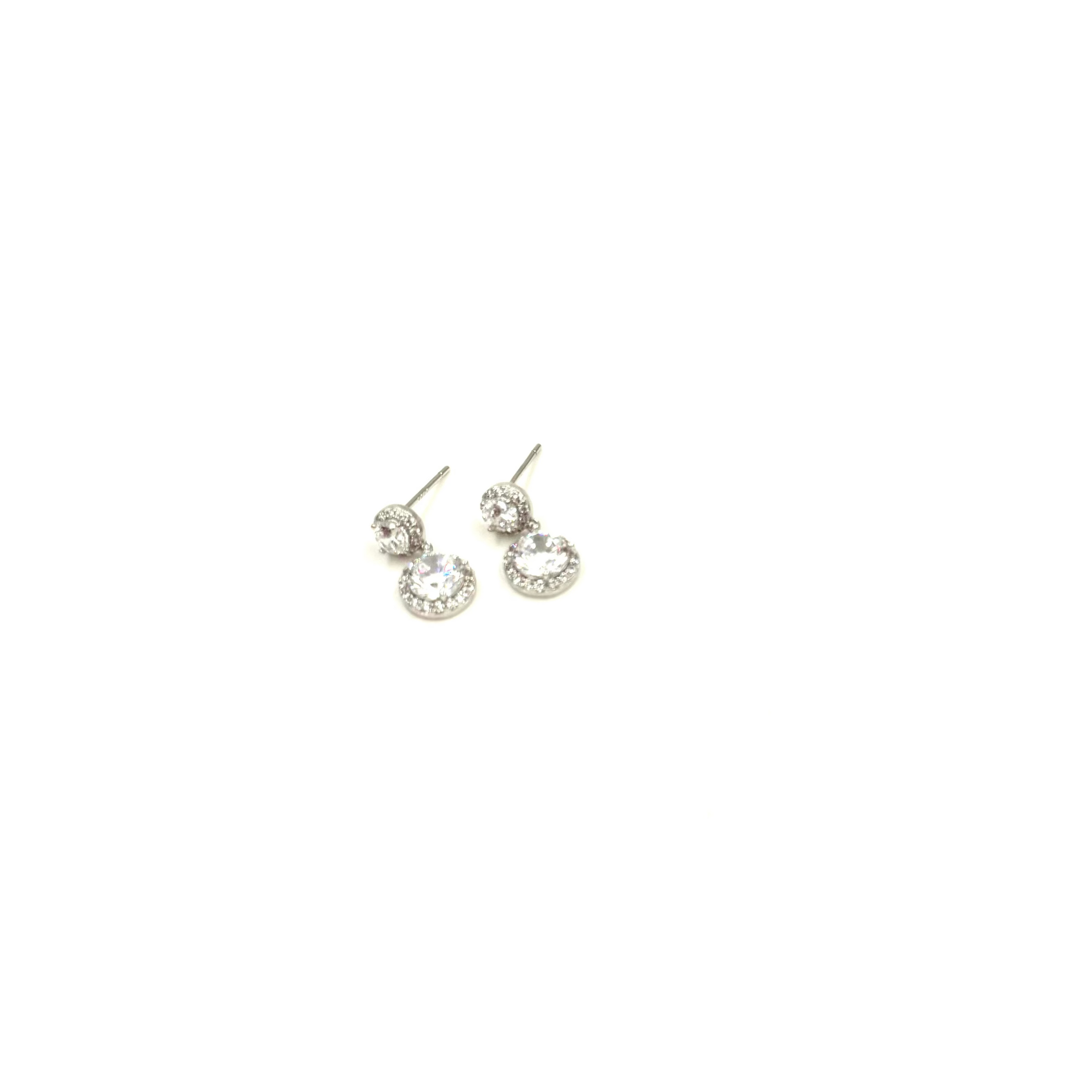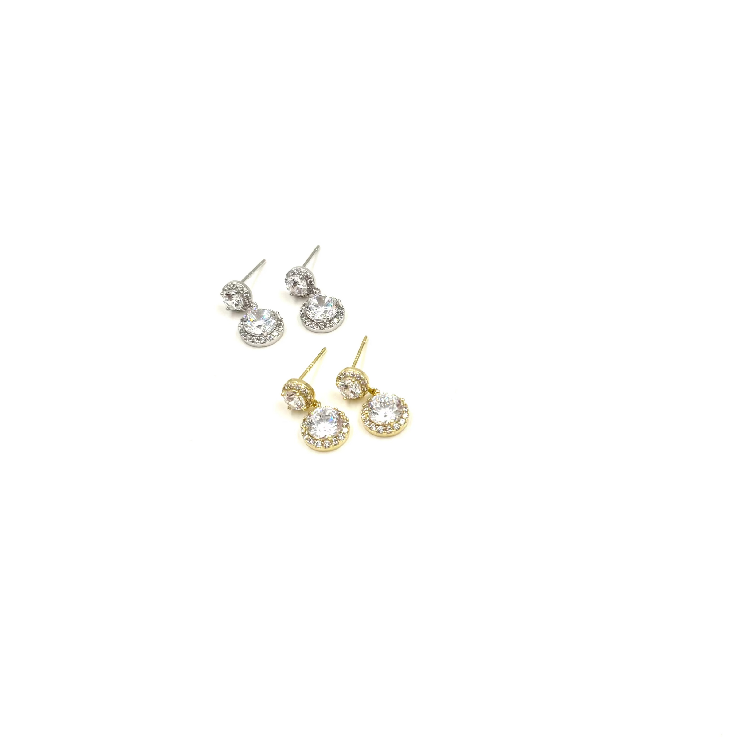 Ashley Gold Sterling Silver Double Drop Halo CZ Stud Earrings