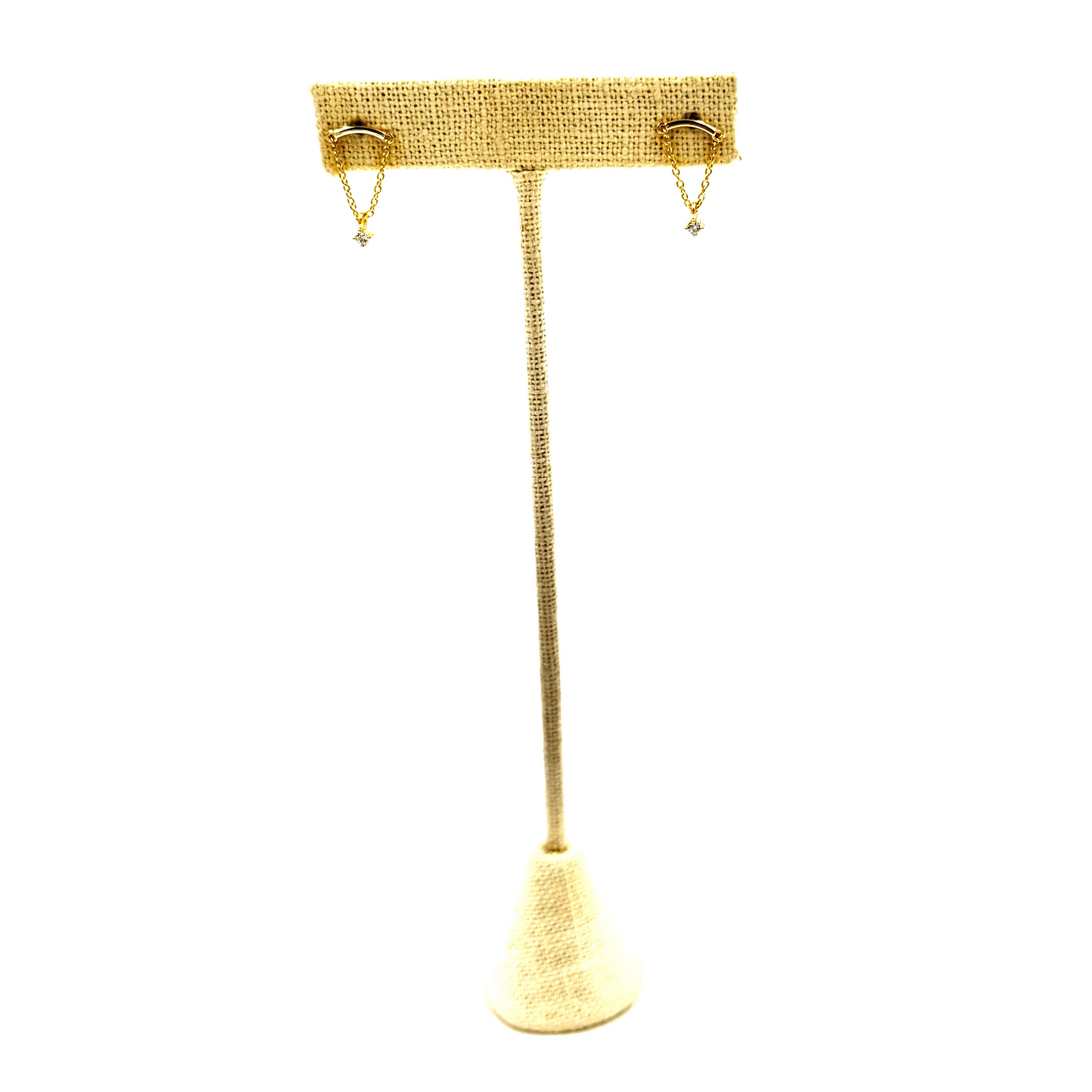 Ashley Gold Sterling Silver Gold Plated Curved Design CZ Chain Drop Earrings