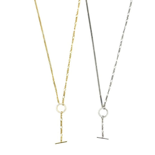 Ashley Gold Sterling Silver Combo Link CZ Circle Drop Necklace