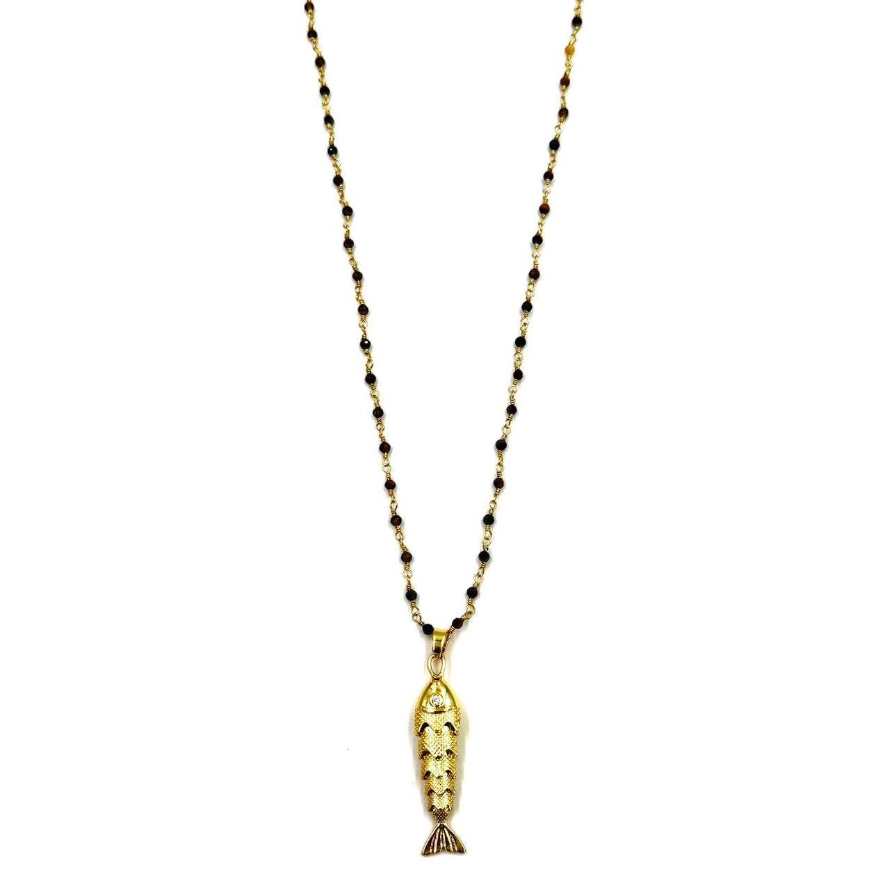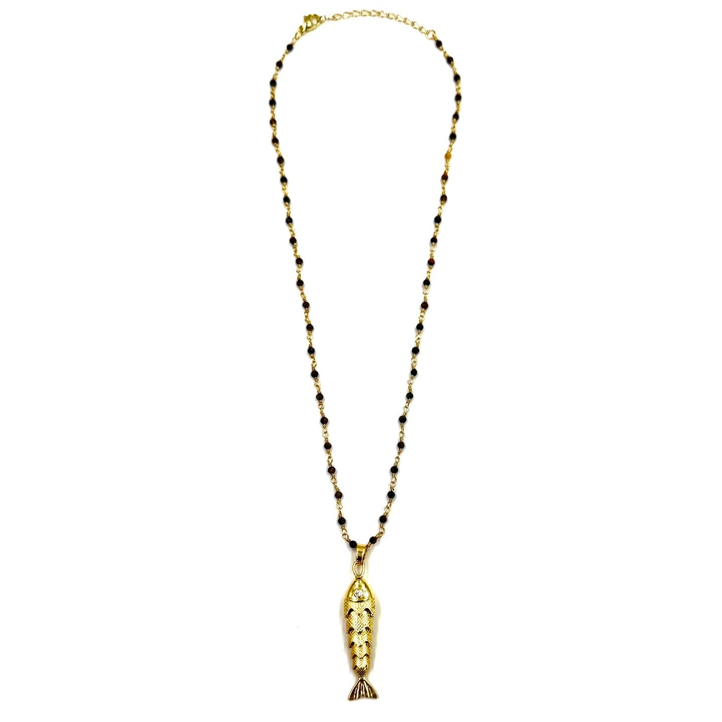 Ashley Gold Stainless Steel Gold Plated Brown Beaded Wire Fish Charm Necklace