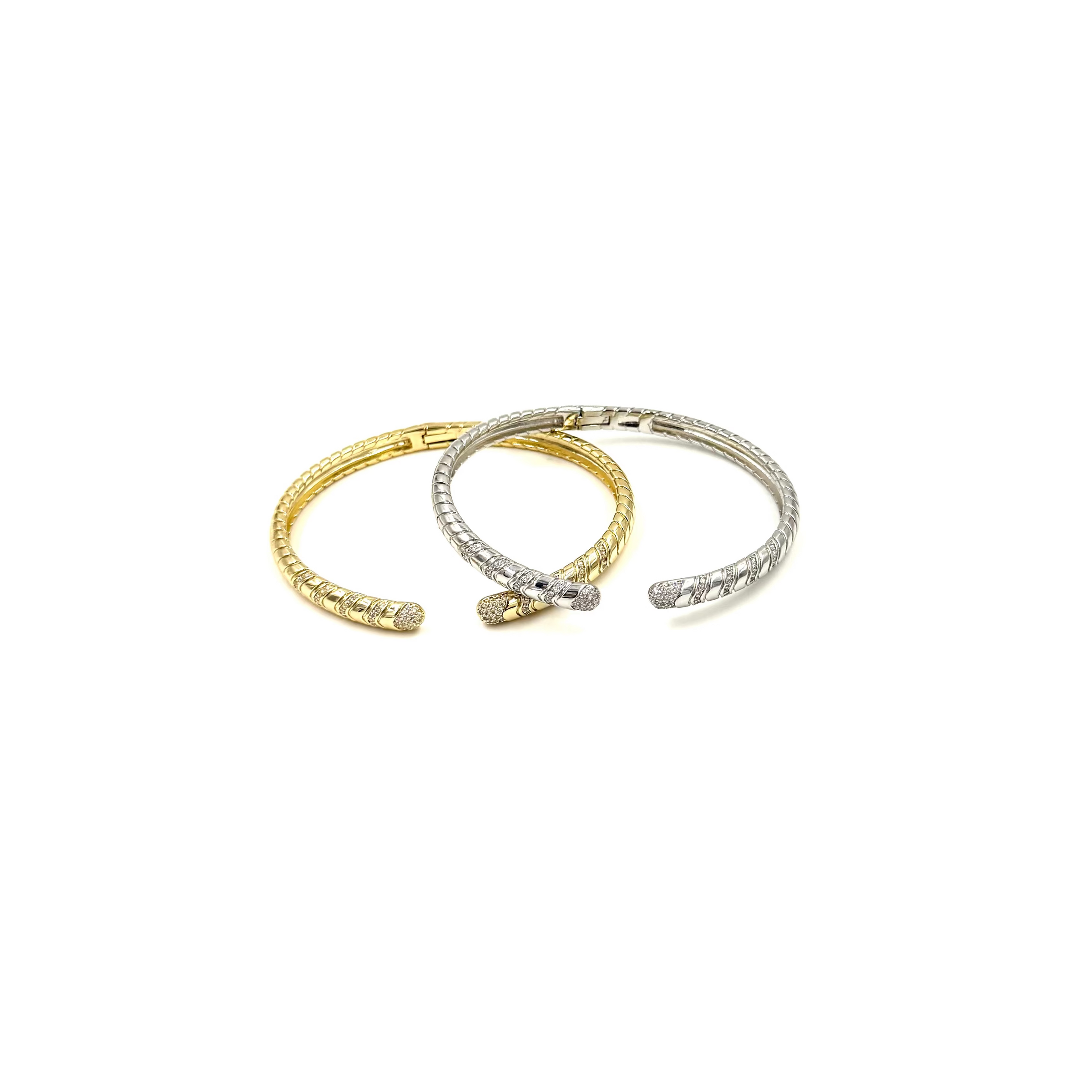 Ashley Gold Stainless Steel Assorted Row Cz Design Bangle Bracelet