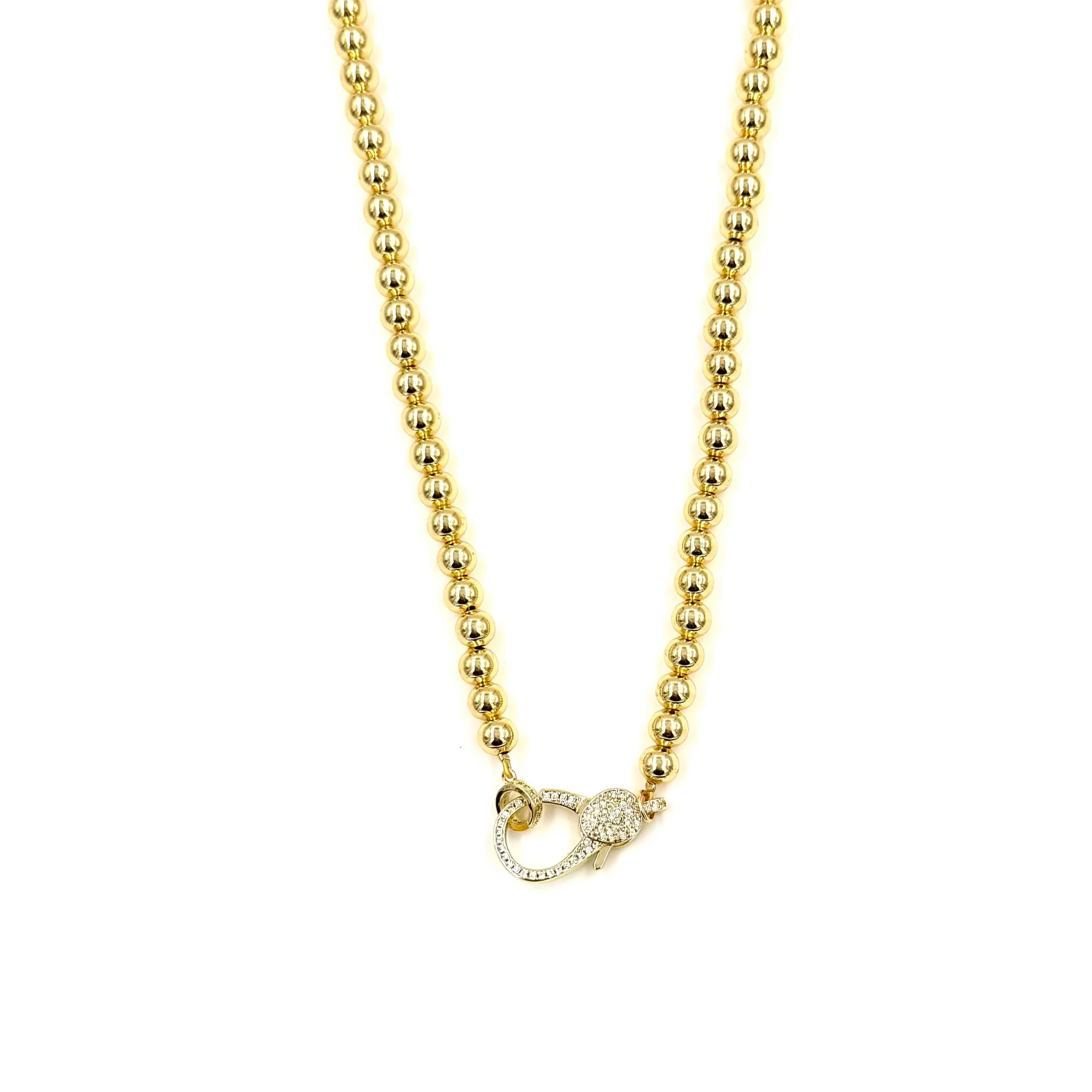Ashley Gold Stainless Steel Gold Plated Ball Design Chain Center CZ Lock Necklace