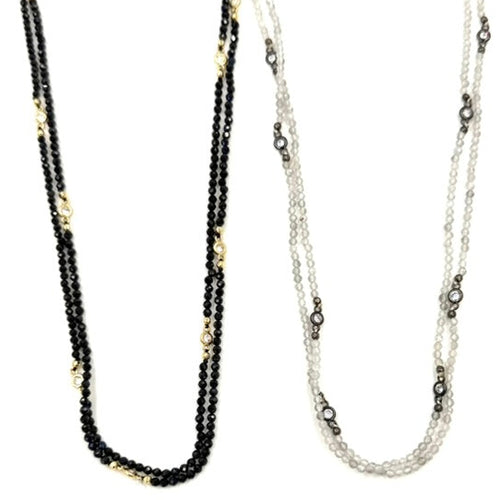 Ashley Gold Stainless Steel with Bezel CZ And Beaded Necklace