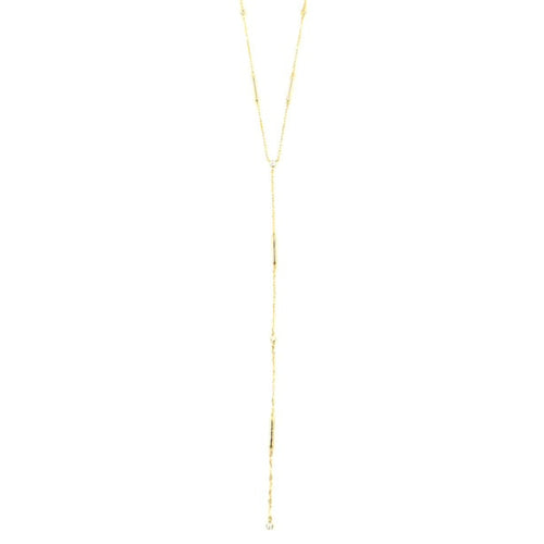 Ashley Gold Sterling Silver Gold Plated Link Chain Lariat With Alternating CZ's And Bars Necklace