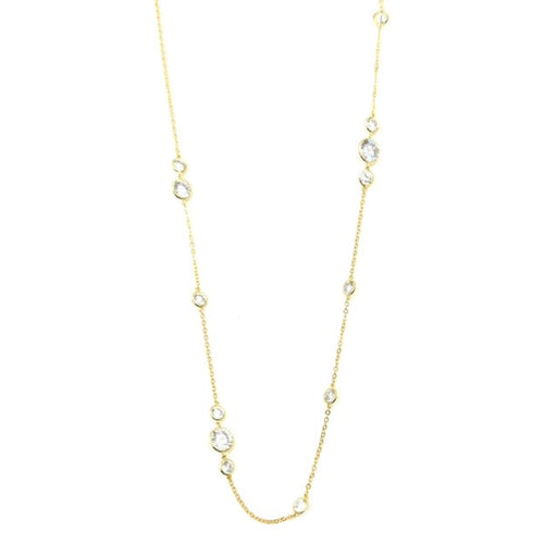 Ashley Gold Sterling Silver Gold Plated Link Chain with 13 Assorted CZ Necklace