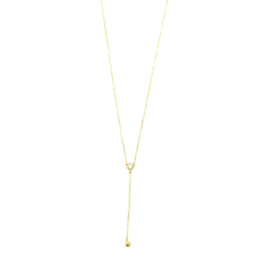 Ashley Gold Sterling Silver Gold Plated Link Chain Lariat With Single Bezel CZ Necklace