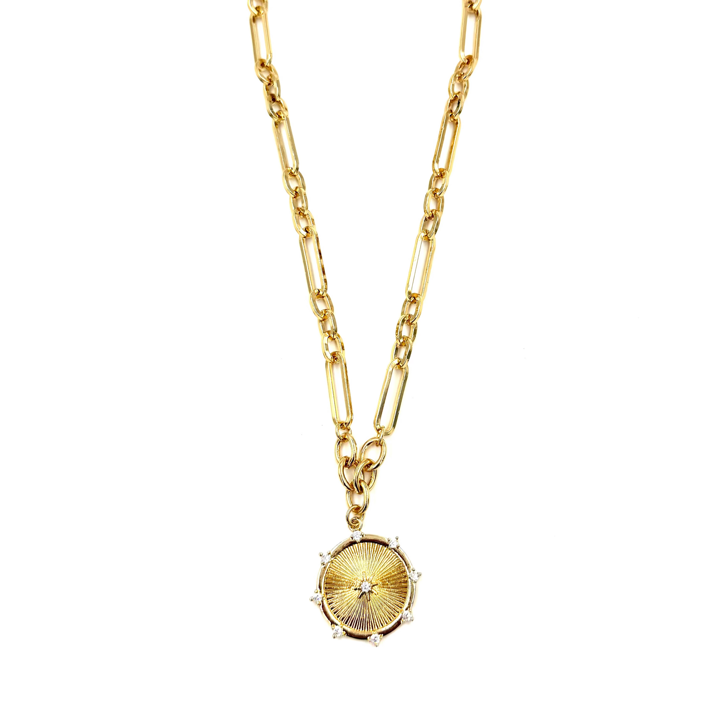 Ashley Gold Stainless Steel Gold Plated 9 CZ Disc Drop Necklace