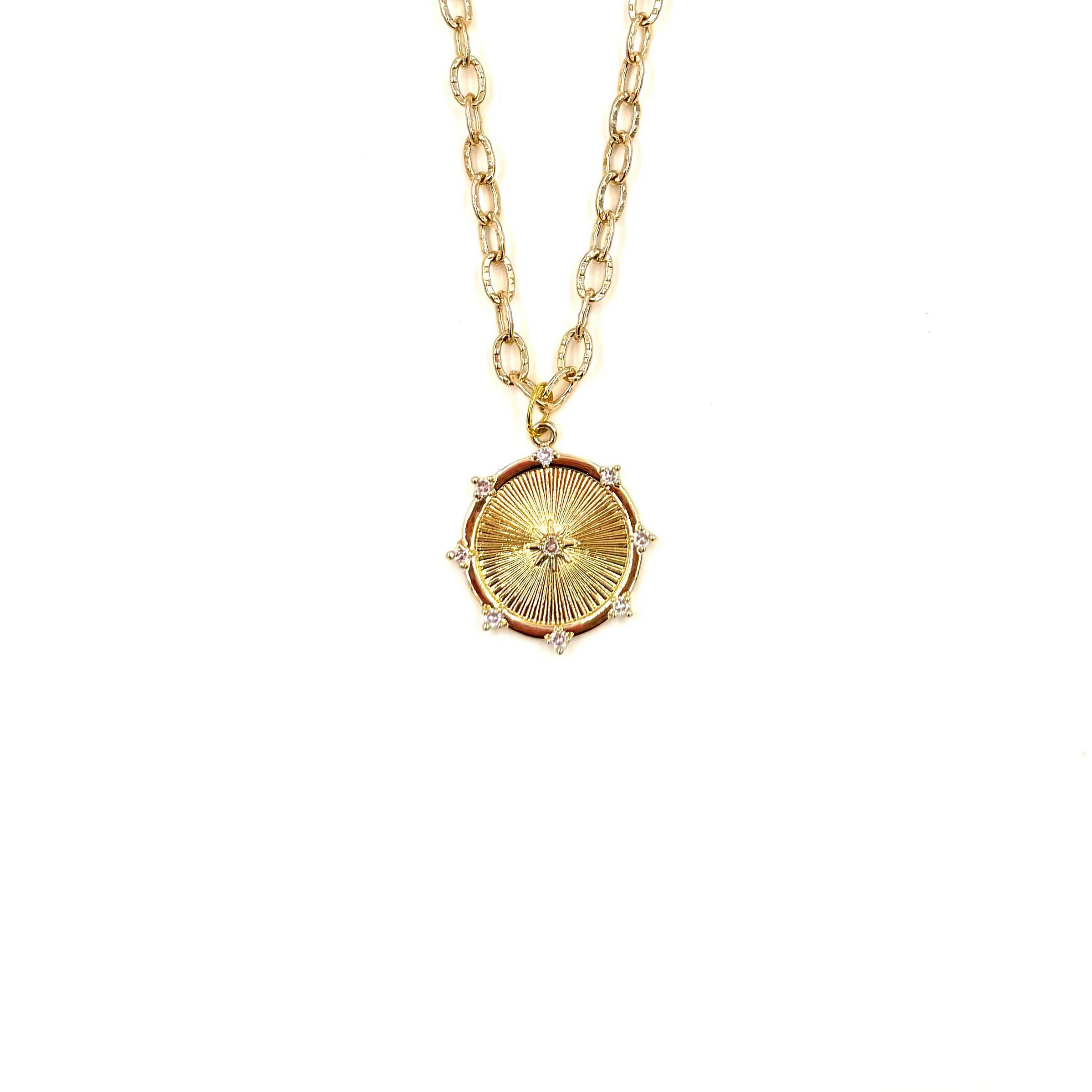 Ashley Gold Stainless Steel Gold Plated Center CZ Disc Drop Necklace