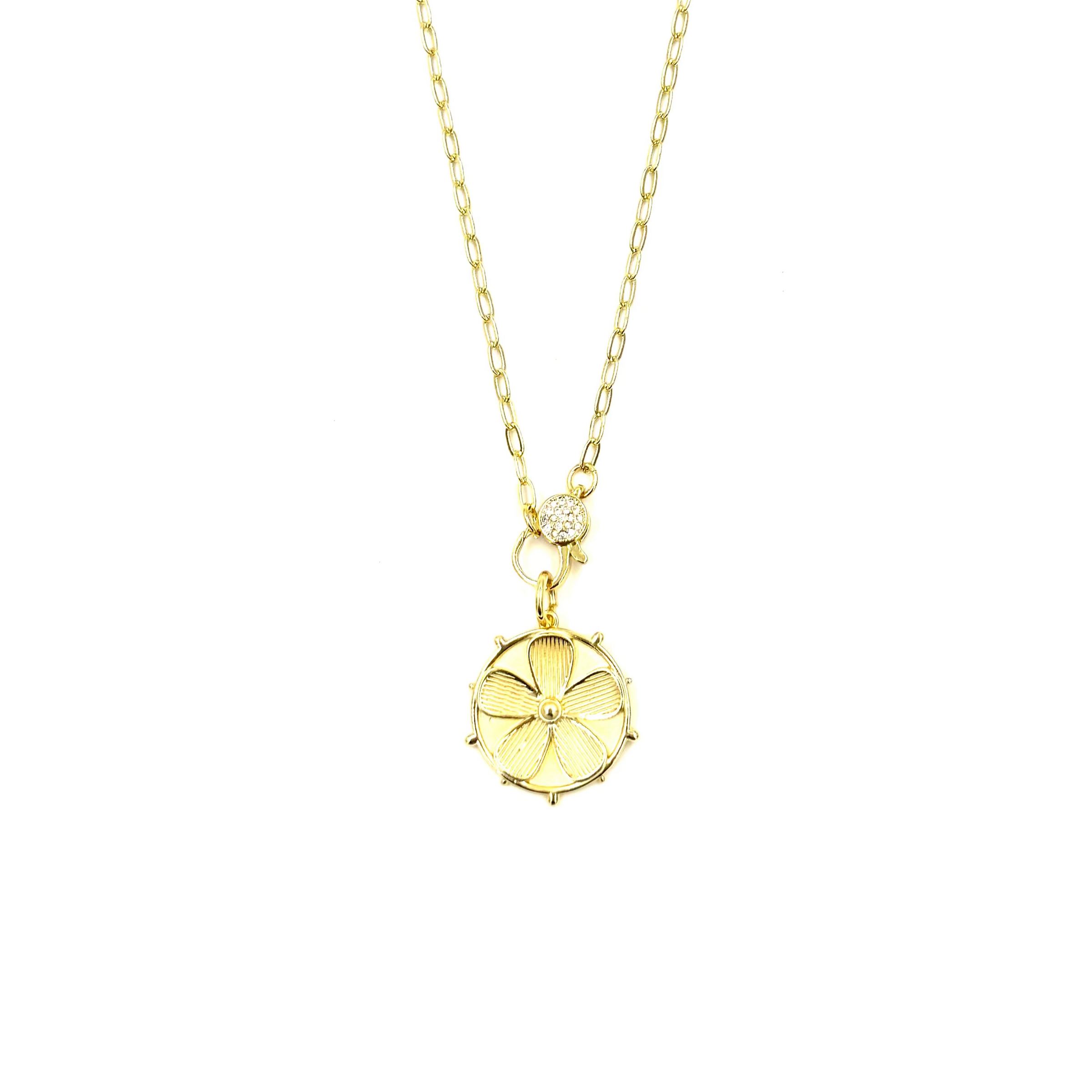 Ashley Gold Stainless Steel Gold Plated CZ Clasp Flower Pendant Necklace