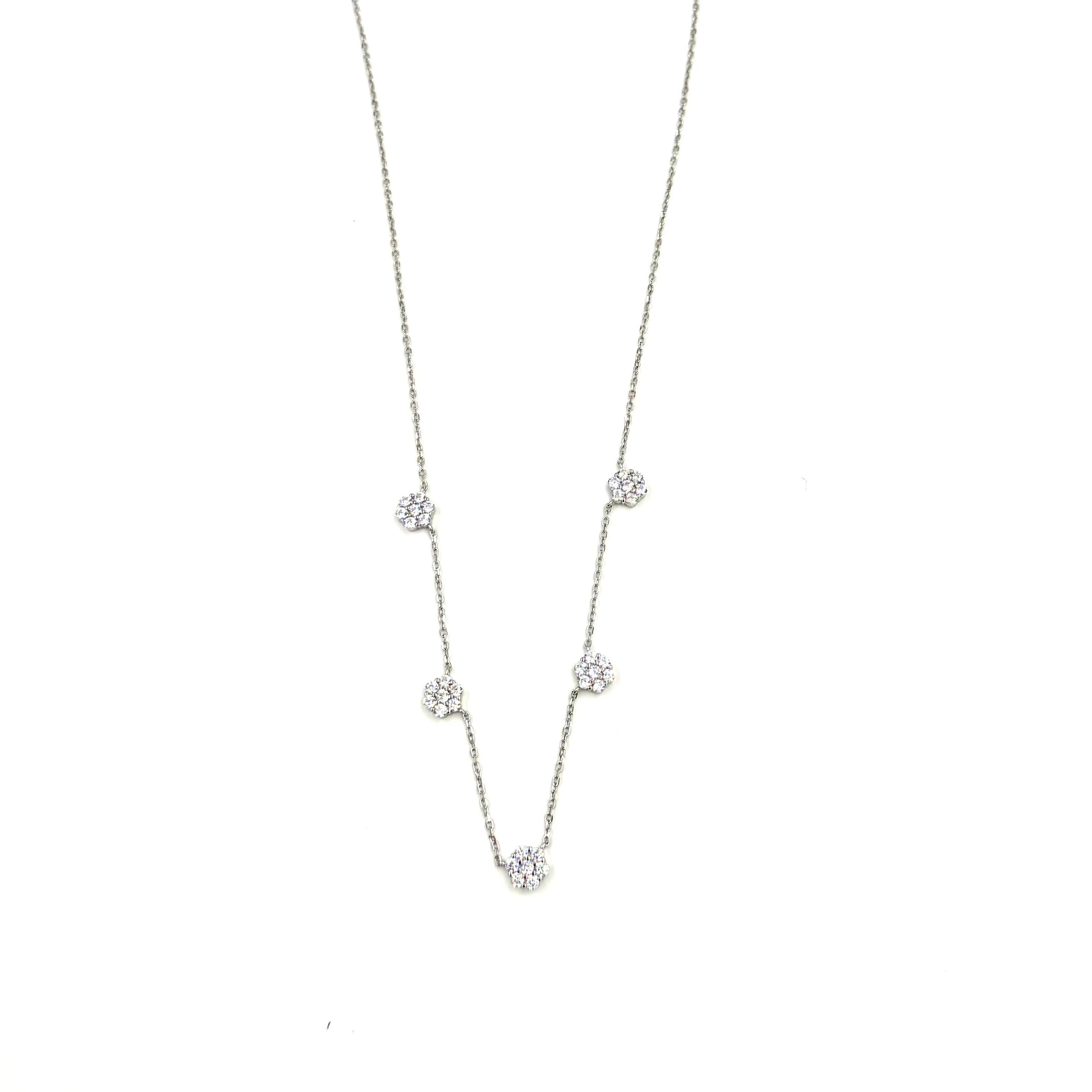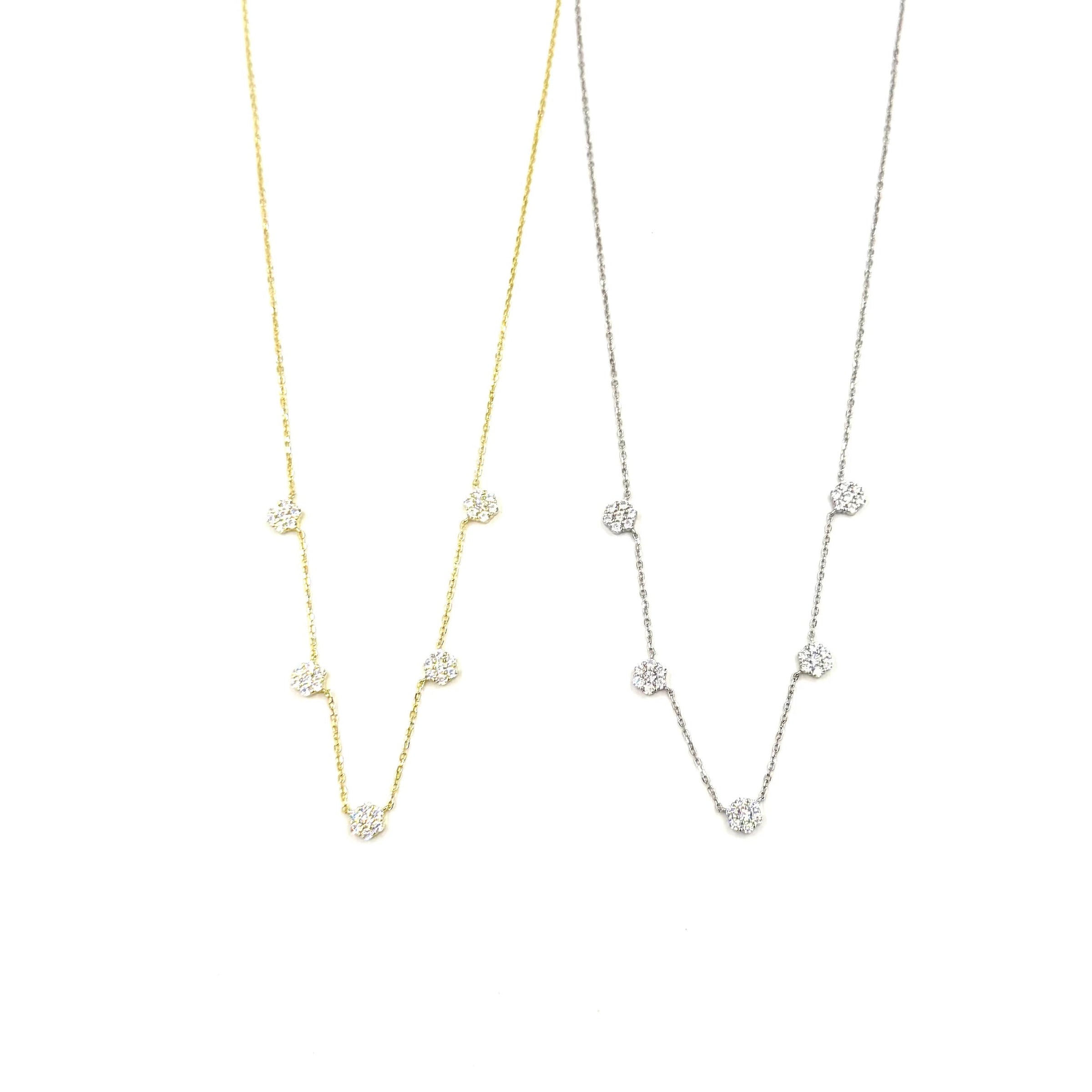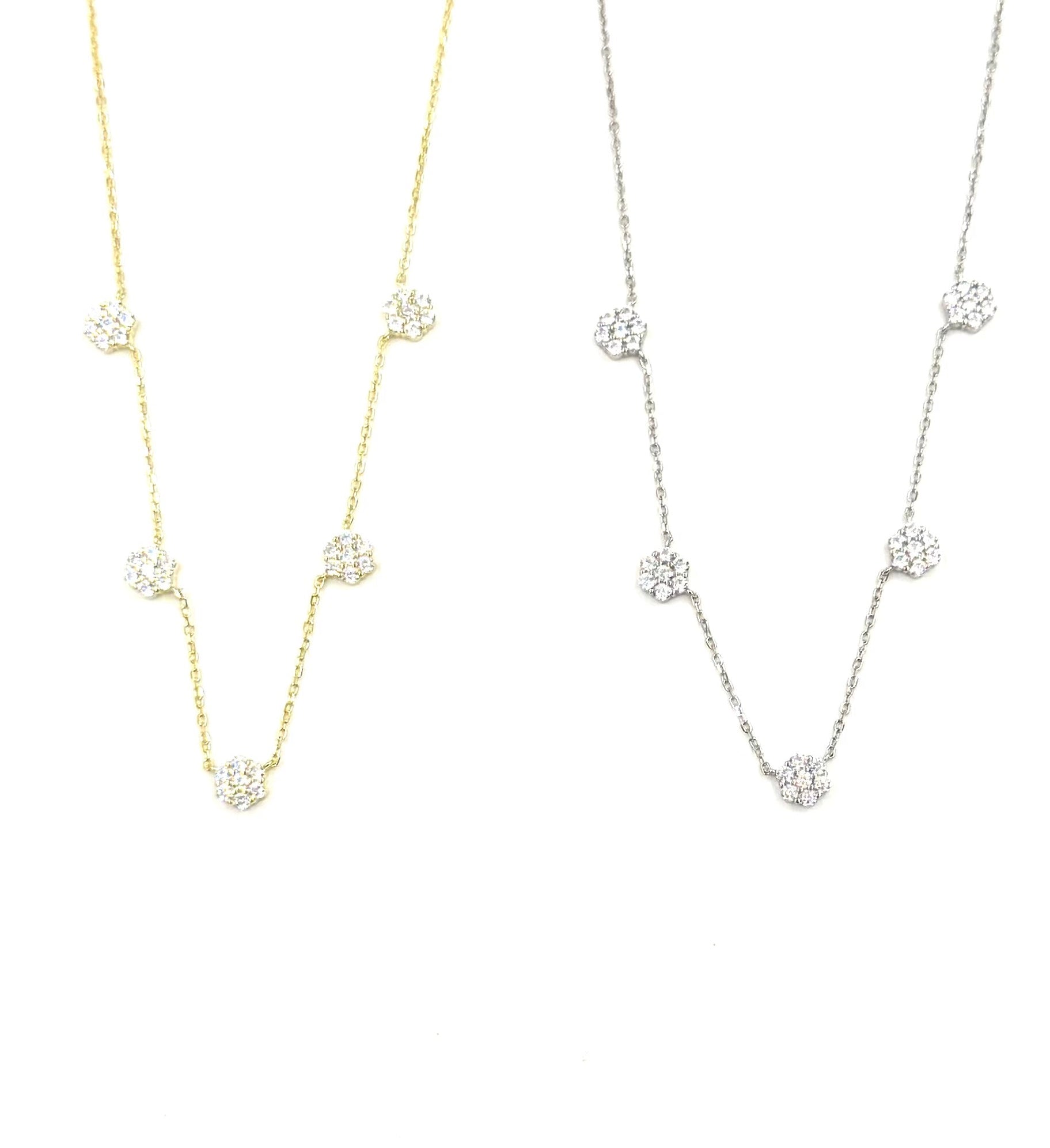 Ashley Gold Sterling Silver 5 Drop Flower CZ Necklace