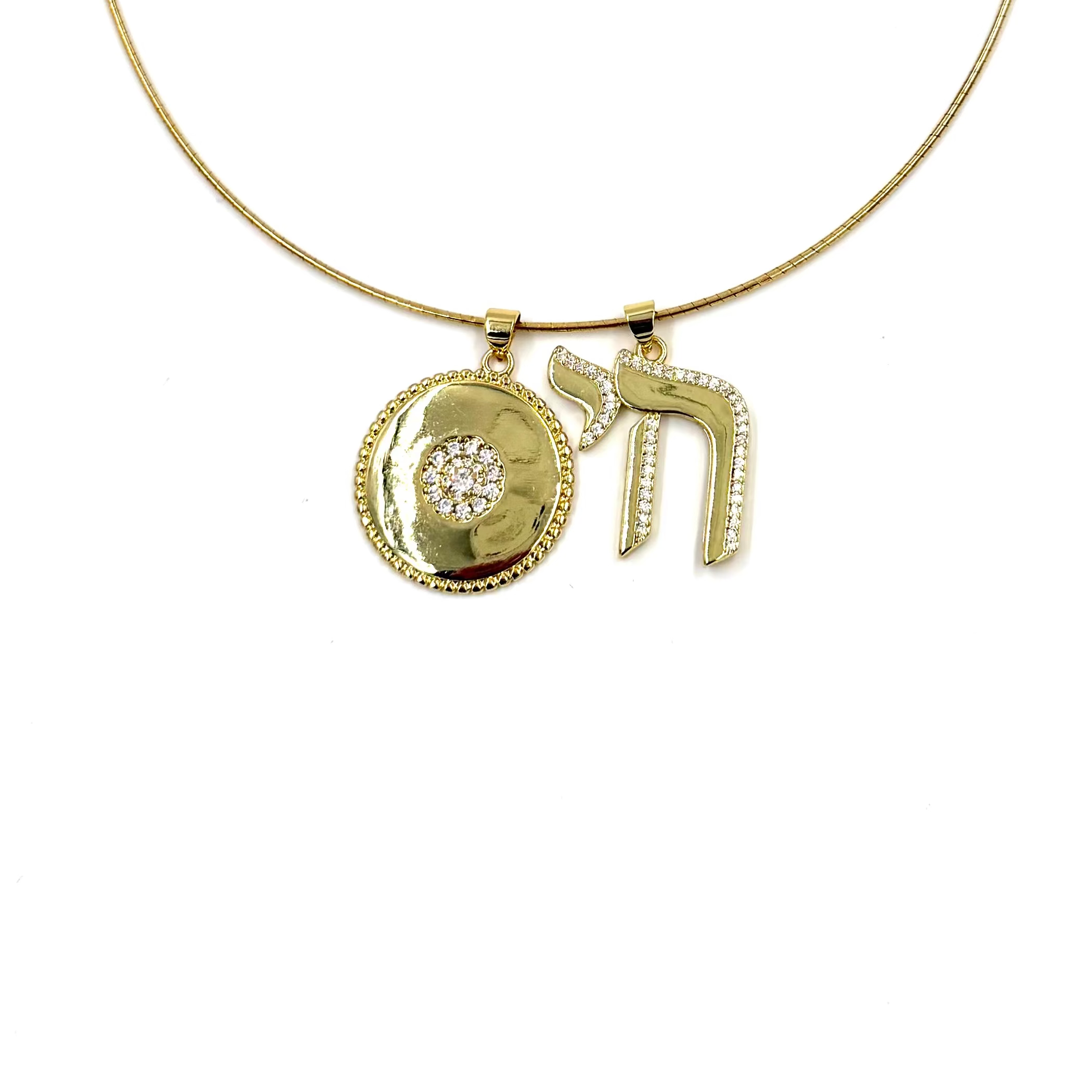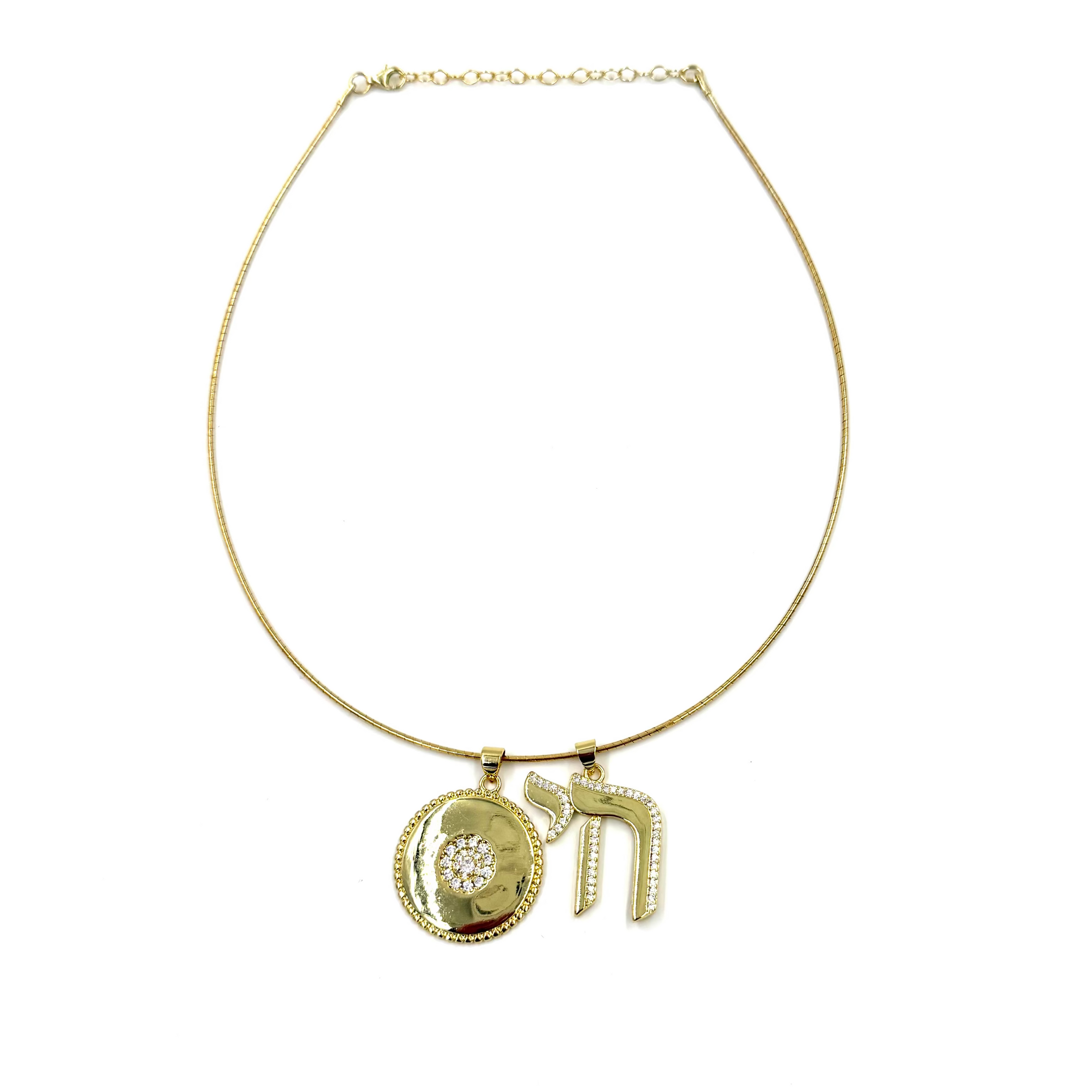 Ashley Gold Sterling Silver Gold Plated Wire Chain With Circle Double Pendant Necklace