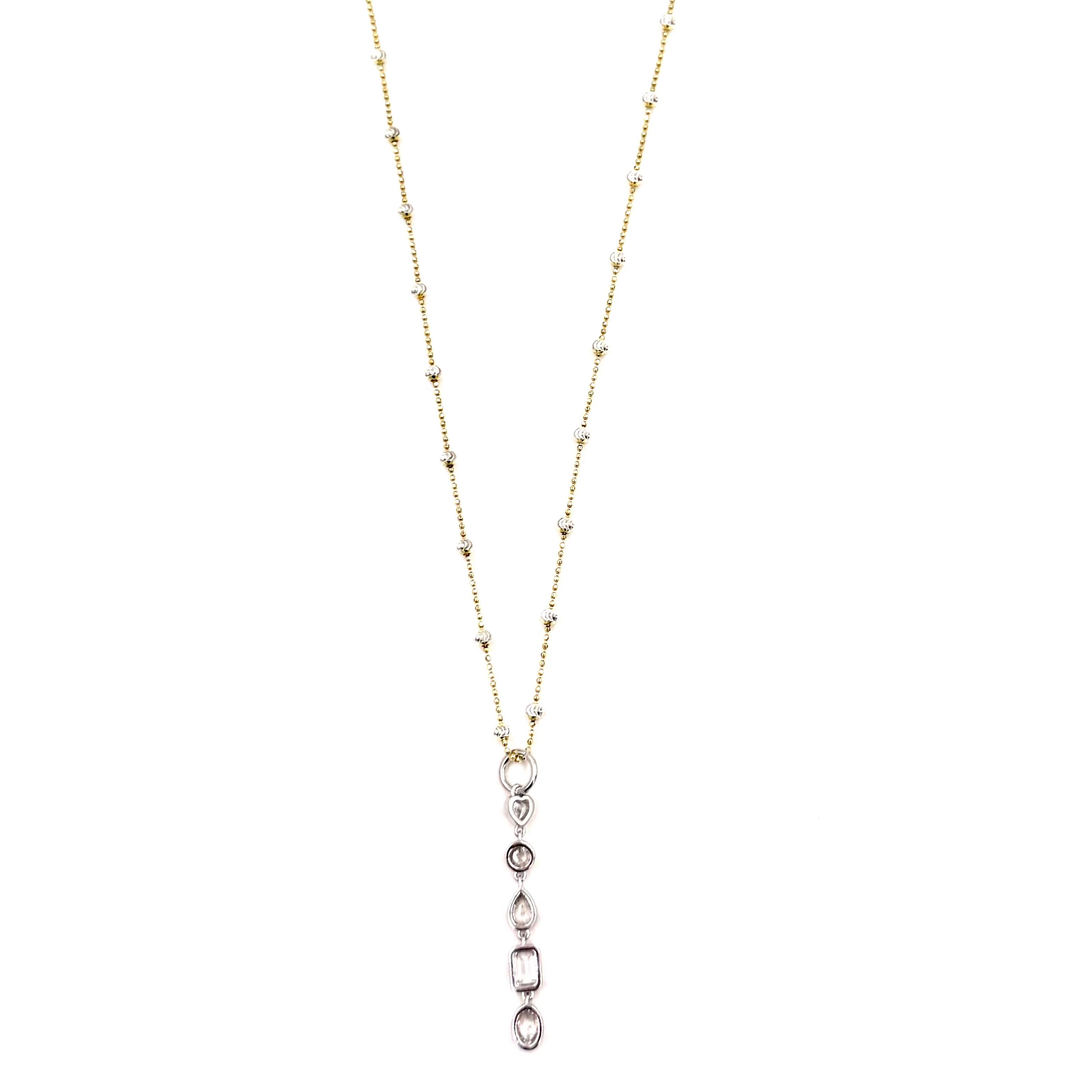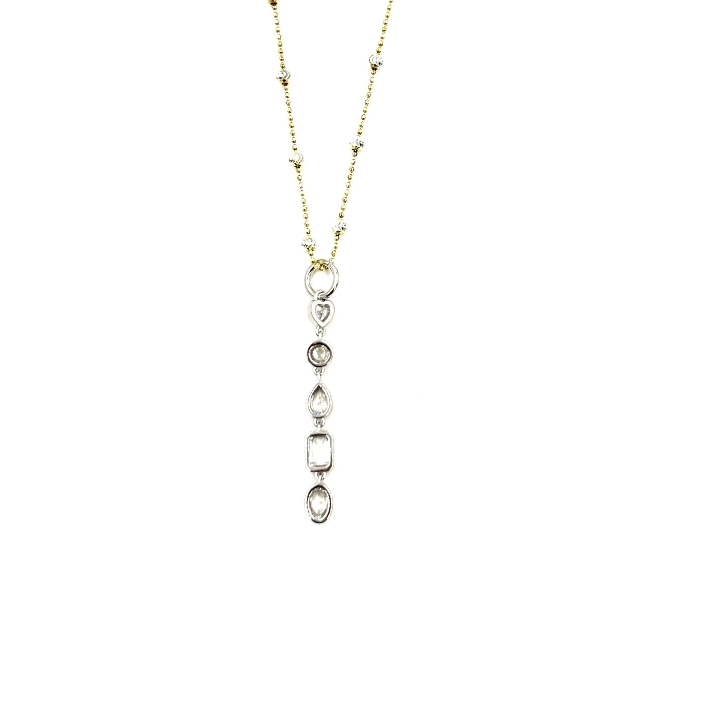 Ashley Gold Sterling Silver Two Tone Chain Multi CZ Shape Drop Pendant Necklace