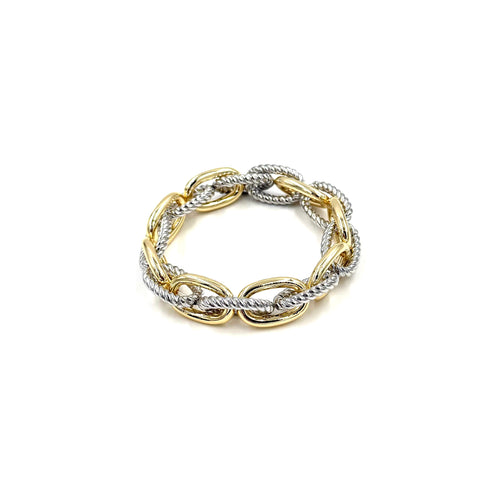 Ashley Gold Stainless Steel Two Toned Ring Design Stretch Bracelet