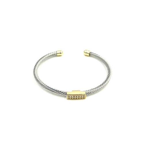Ashley Gold Stainless Steel Two Toned Braided Design With CZ Open Bangle Bracelet
