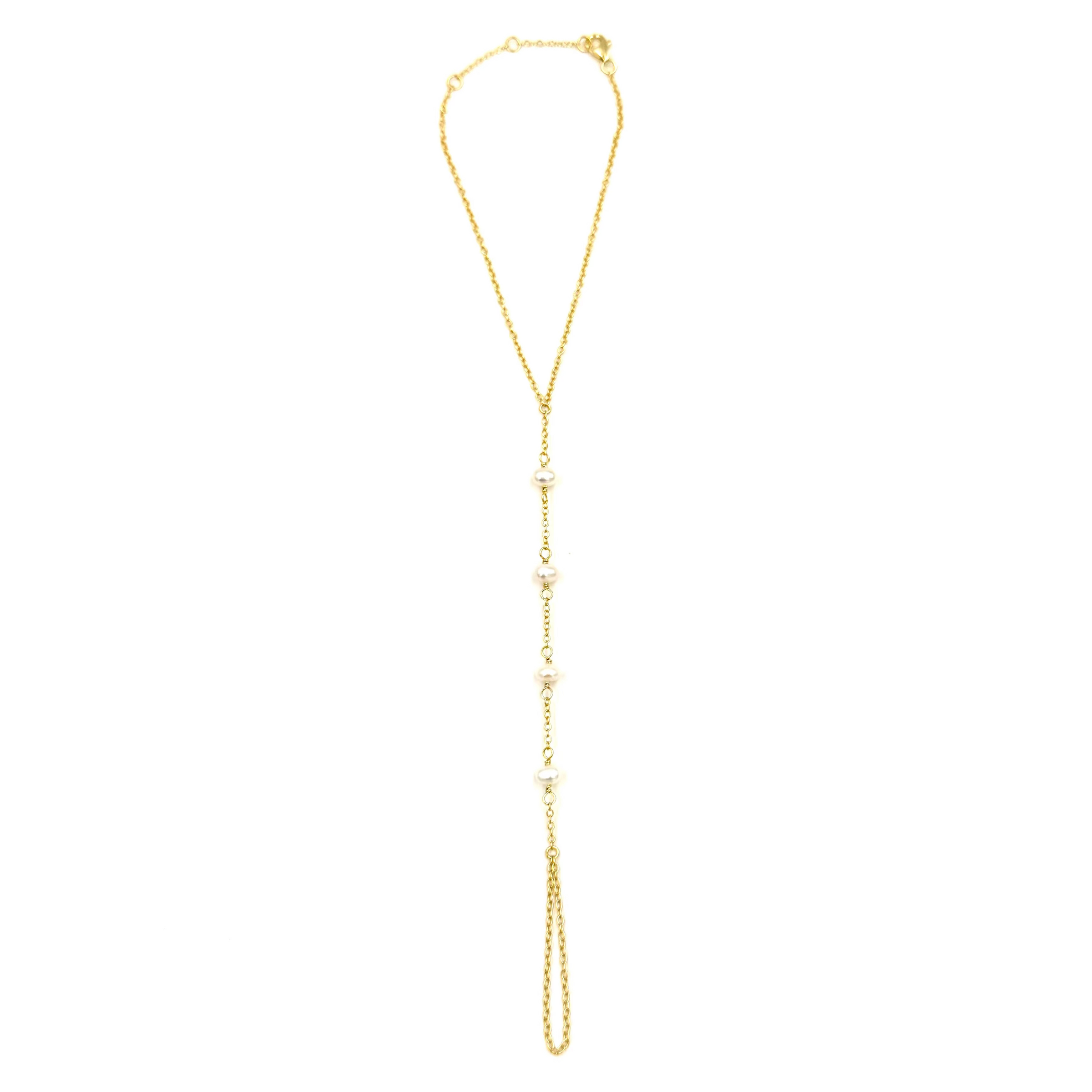 Ashley Gold Sterling Silver Gold Plated 4 Pearl Hand Chain Design Bracelet
