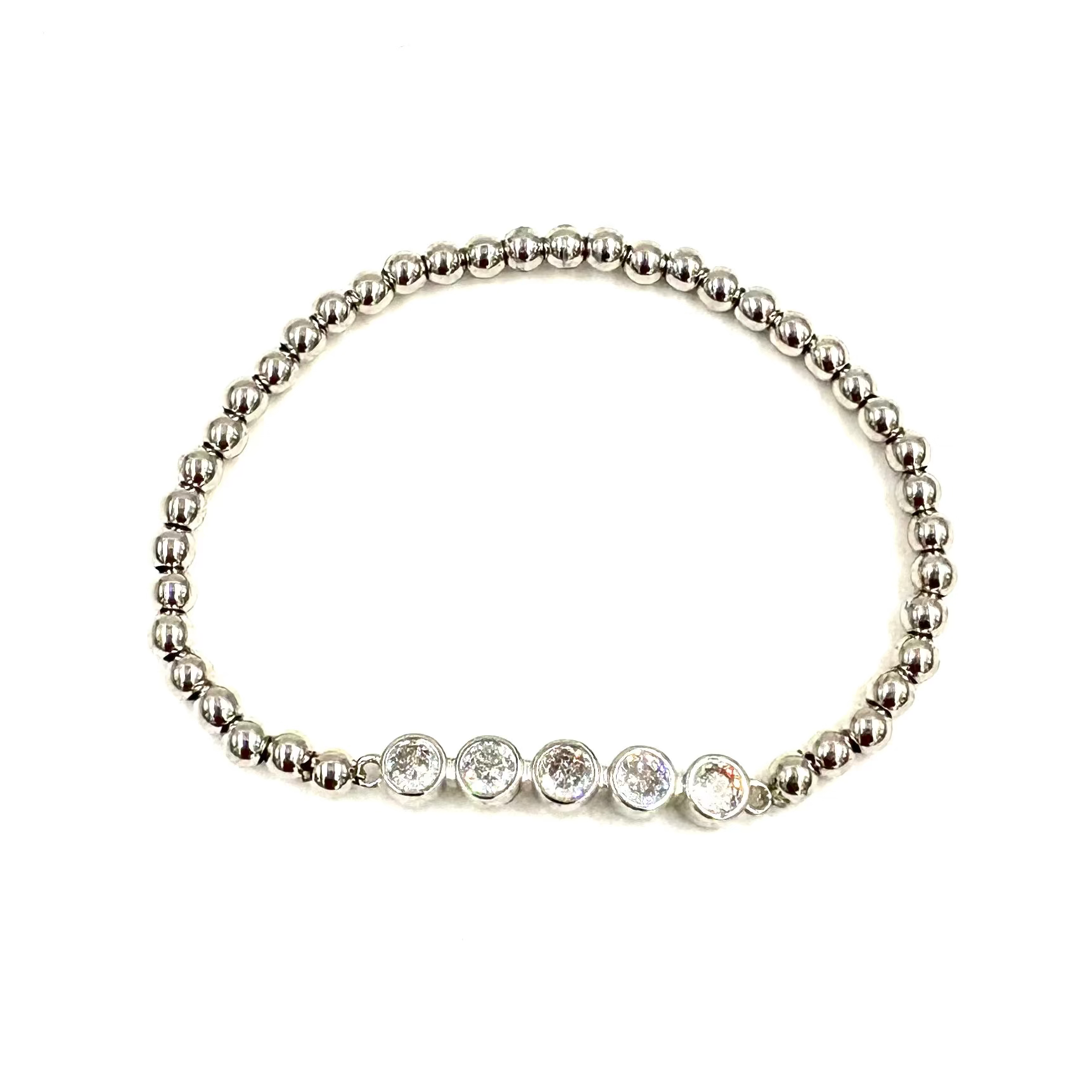Ashley Gold Stainless Steel 5 CZ Bezel Set Ball Beaded Stretch Bracelet
