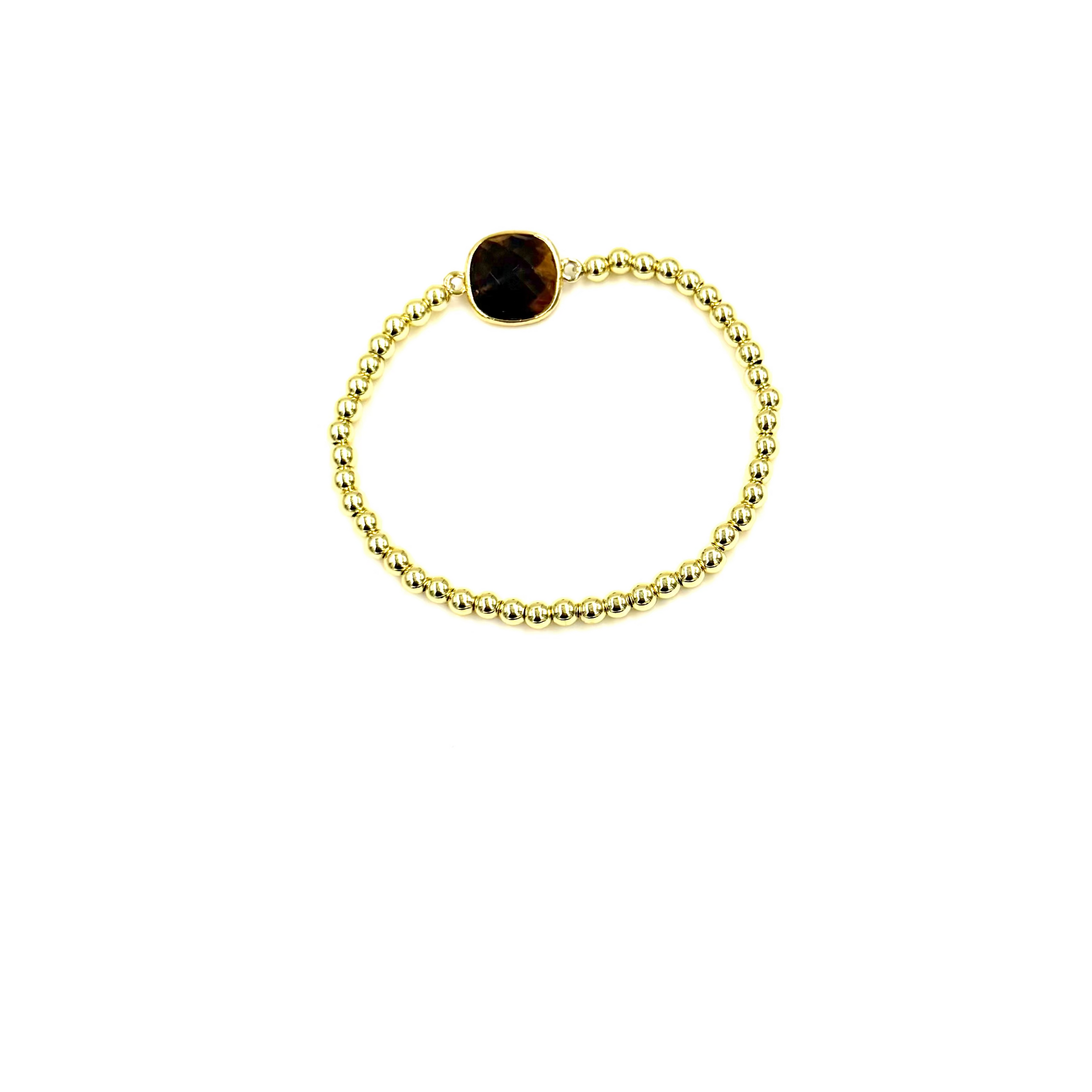 Ashley Gold Stainless Steel Gold Plated Colored Square Shape Semi Precious Ball Beaded Stretch Bracelet
