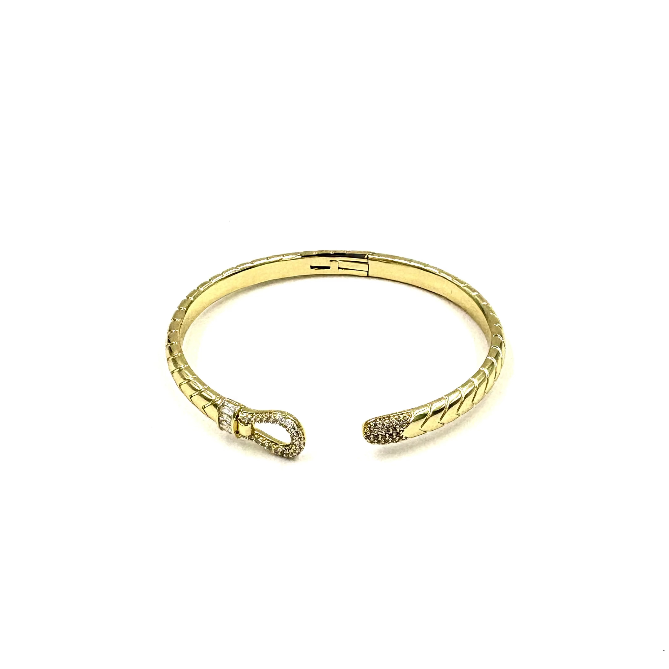 Ashley Gold Stainless Steel Gold Plated Open CZ Loop Design Bangle Bracelet
