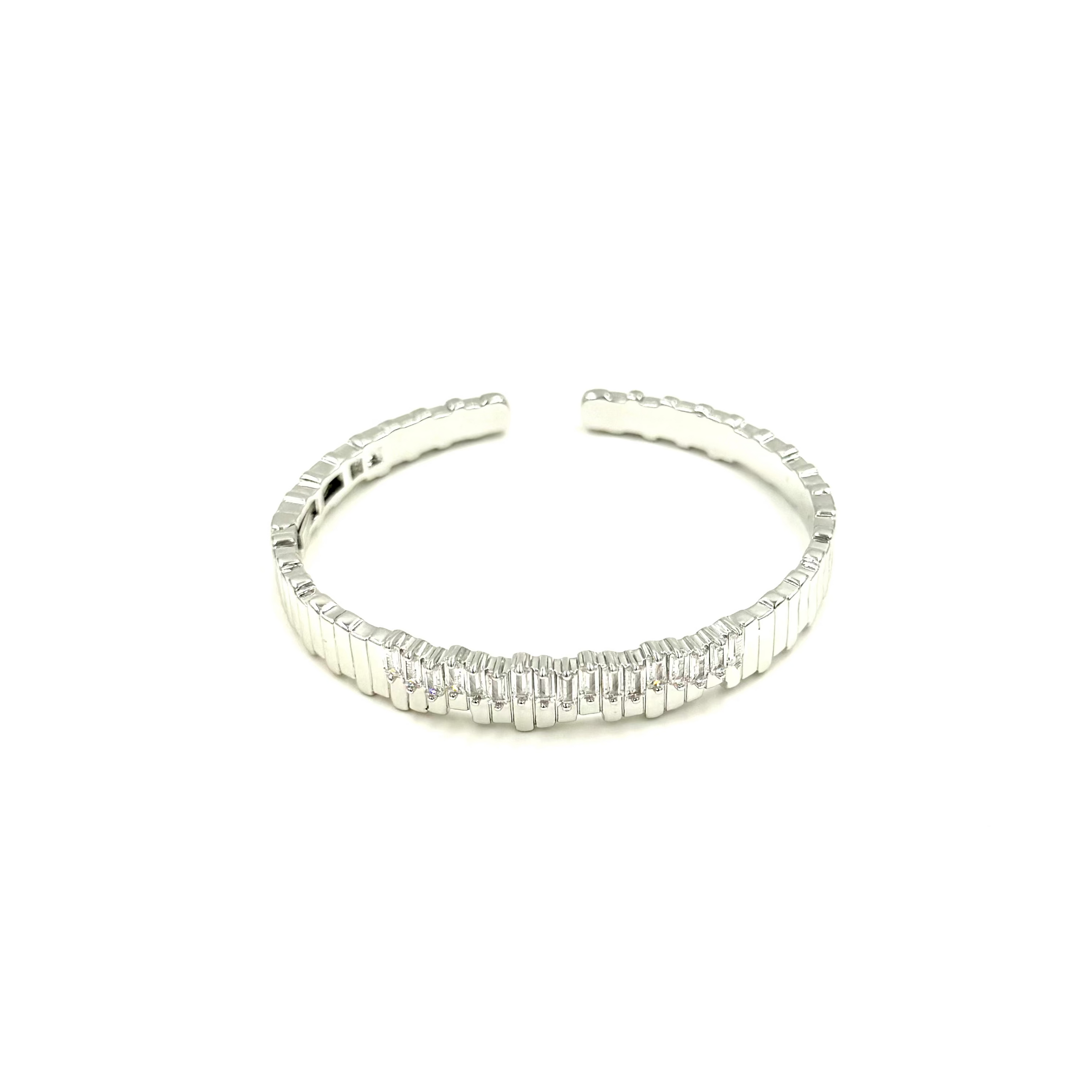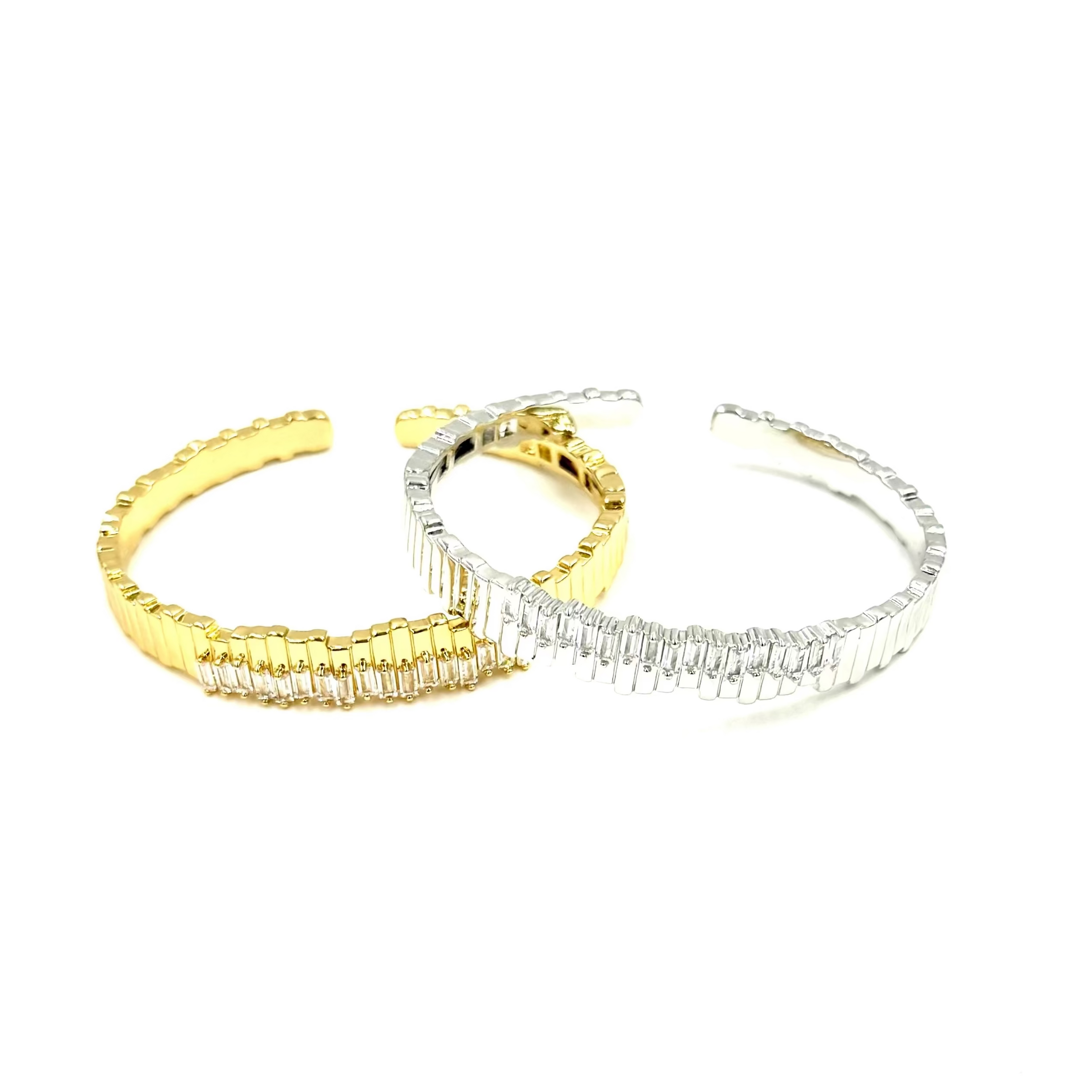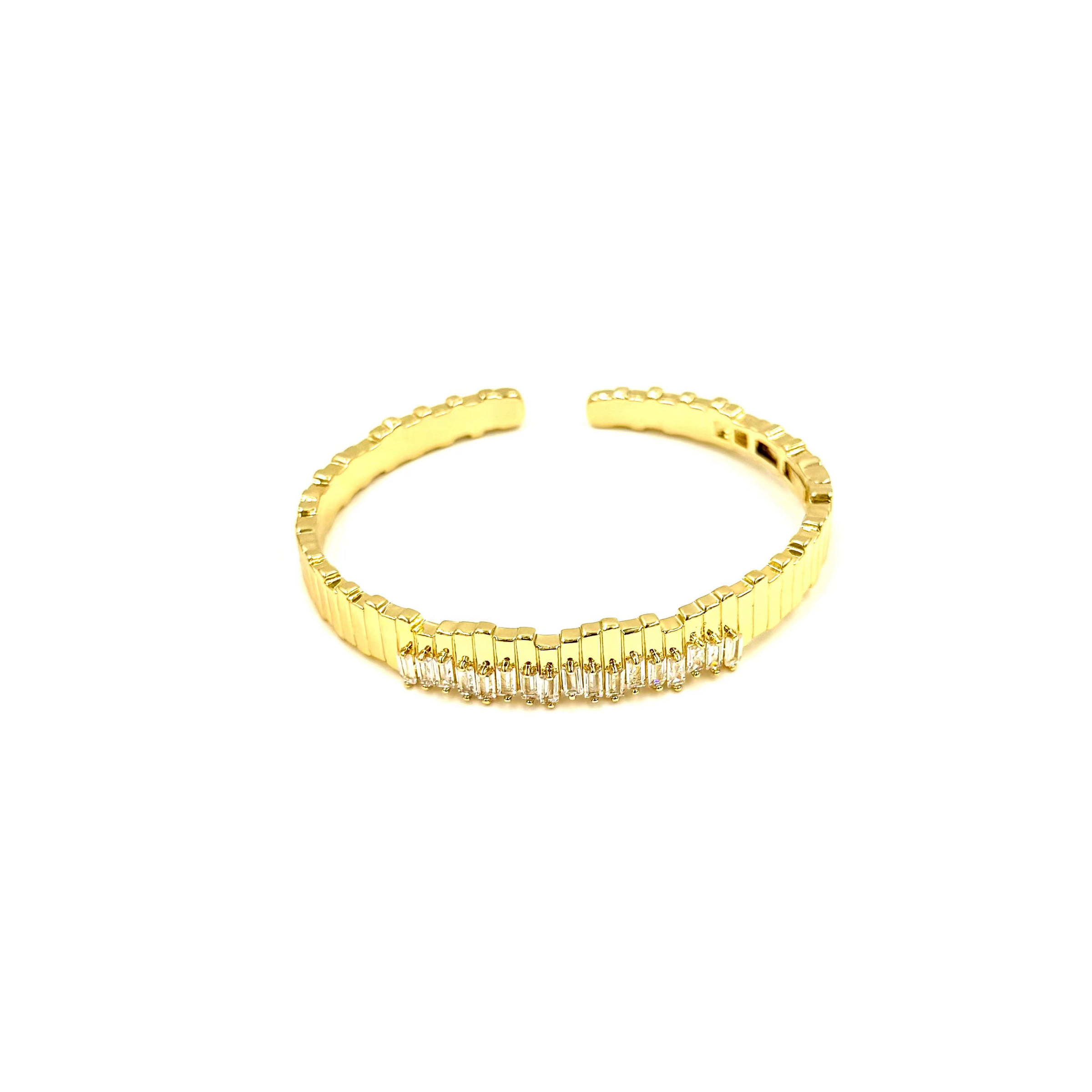 Ashley Gold Stainless Steel Open Bangle Baguette CZ Design