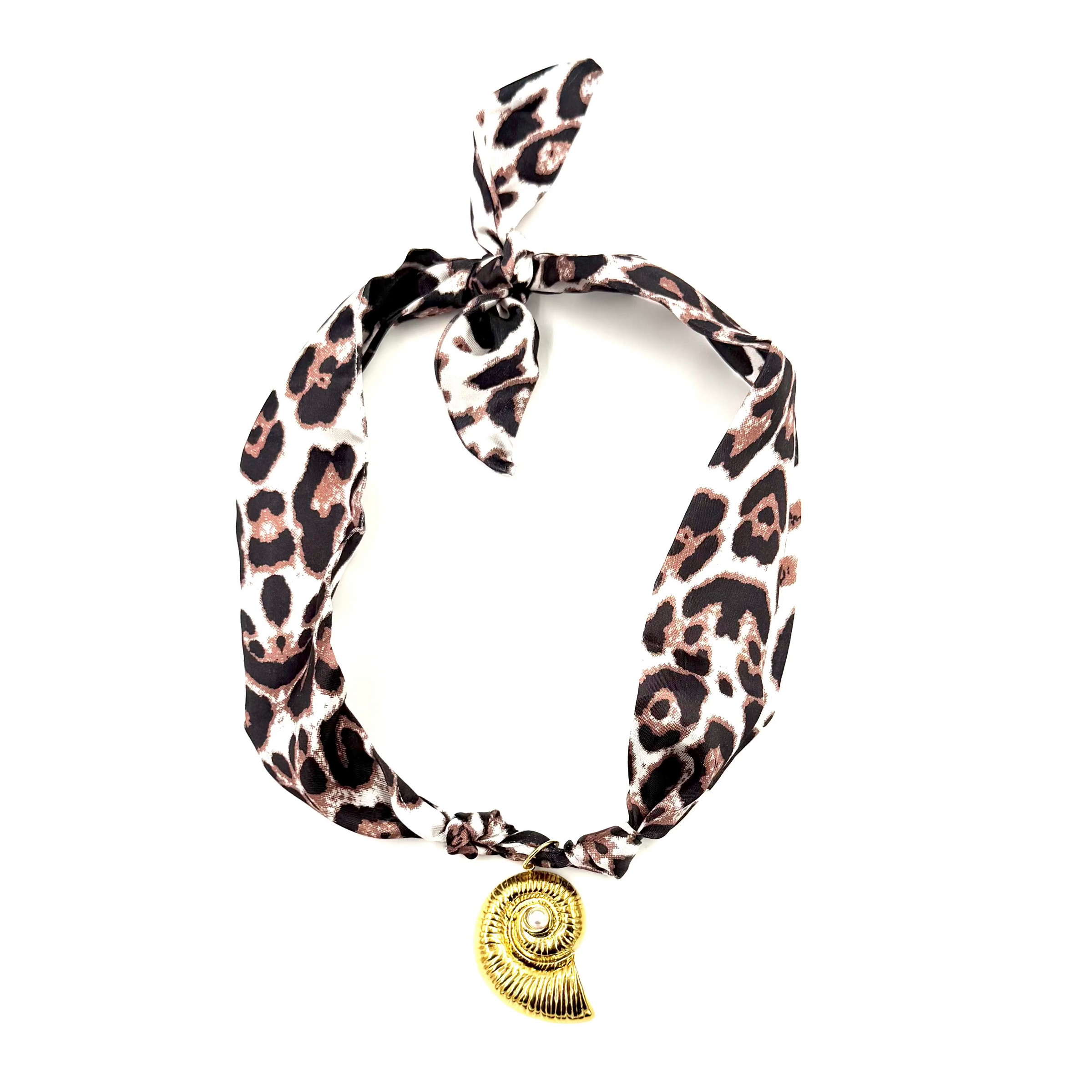 Ashley Gold Stainless Steel Gold Plated Leopard Silk Scarf Shell Necklace