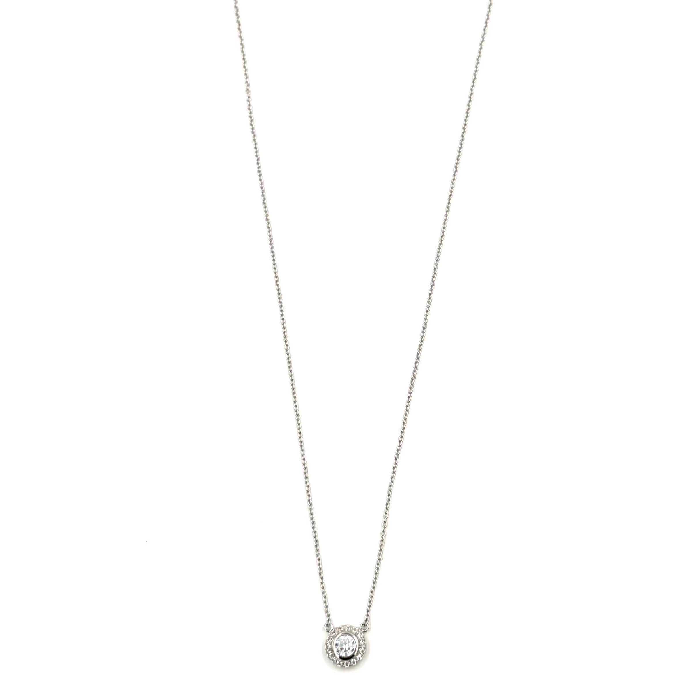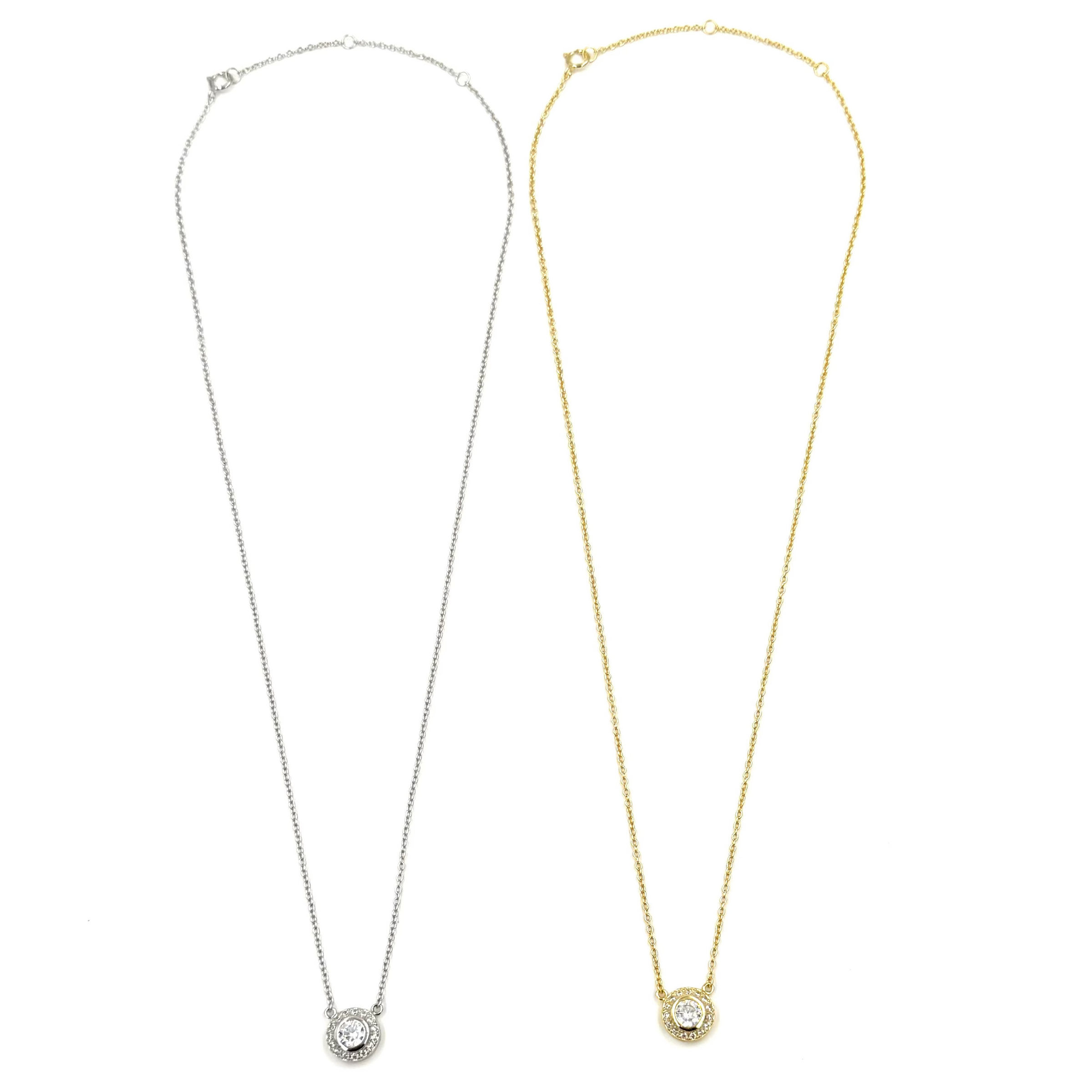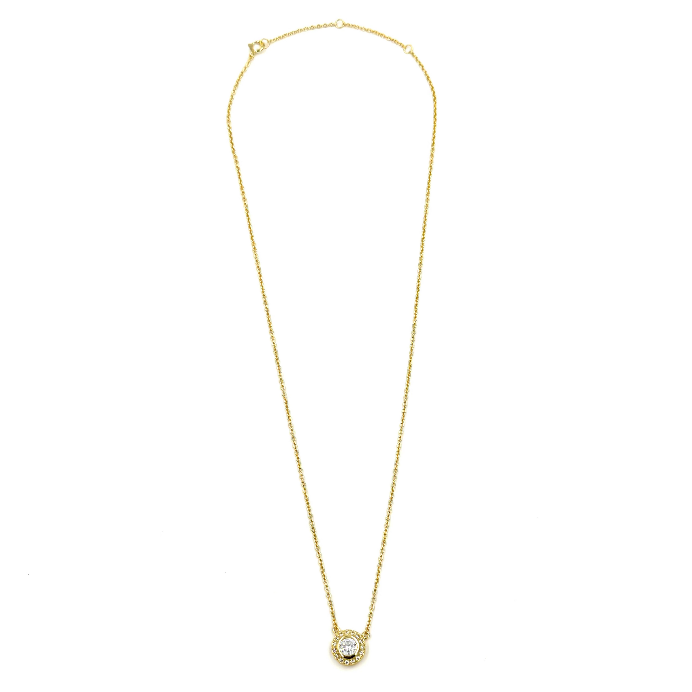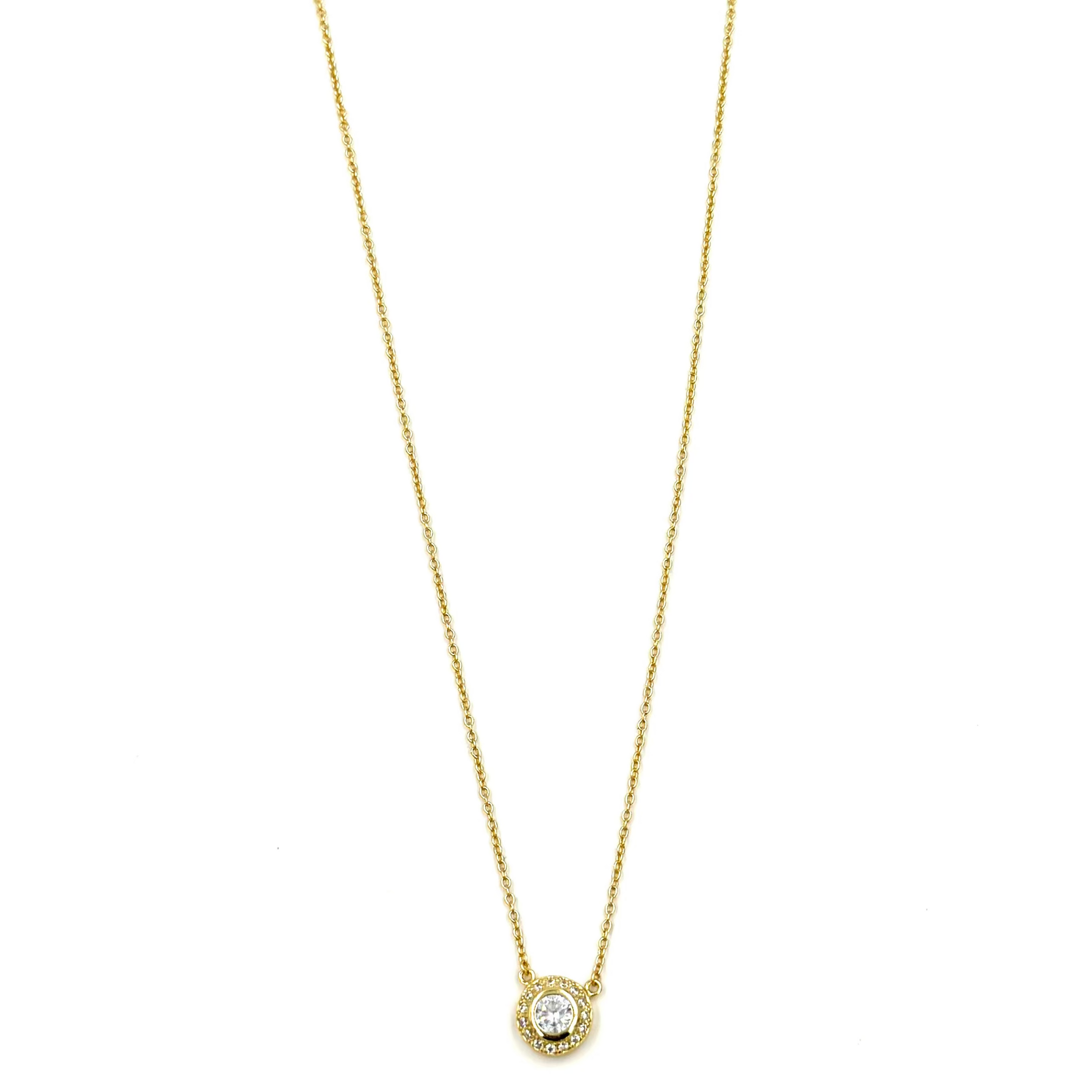 Ashley Gold Sterling Silver Link Chain With Single CZ With Halo Necklace