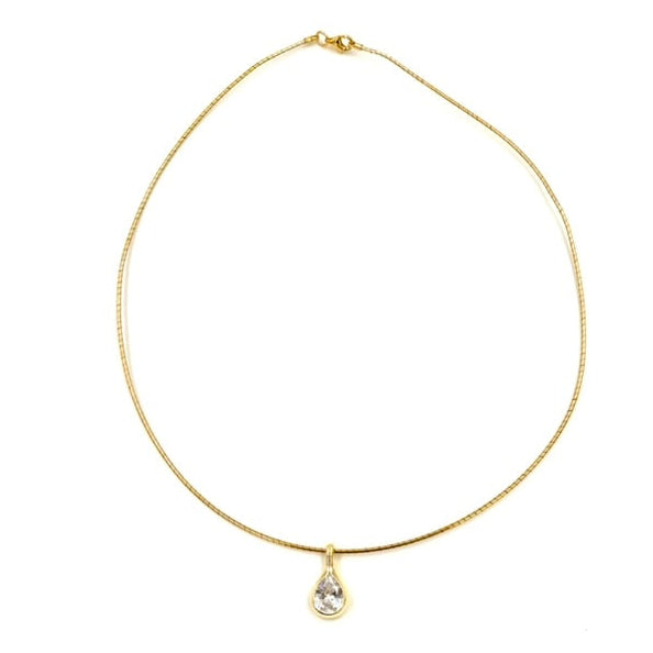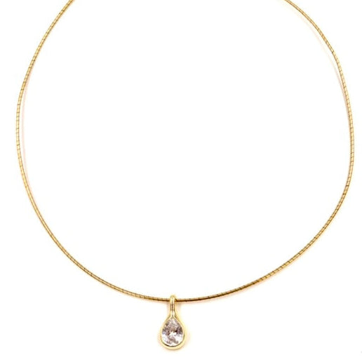 Ashley Gold Sterling Silver Gold Plated Wire Chain Tear Drop CZ Pendant Necklace