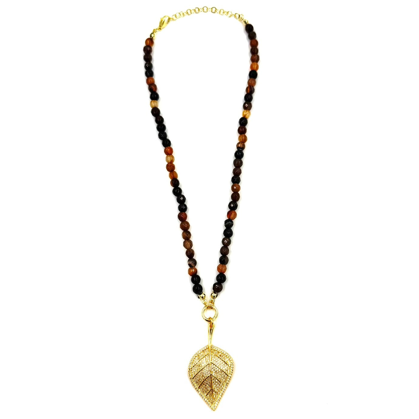 Ashley Gold Stainless Steel Gold Plated Brown Beaded CZ Leaf Detachable Pendant Necklace