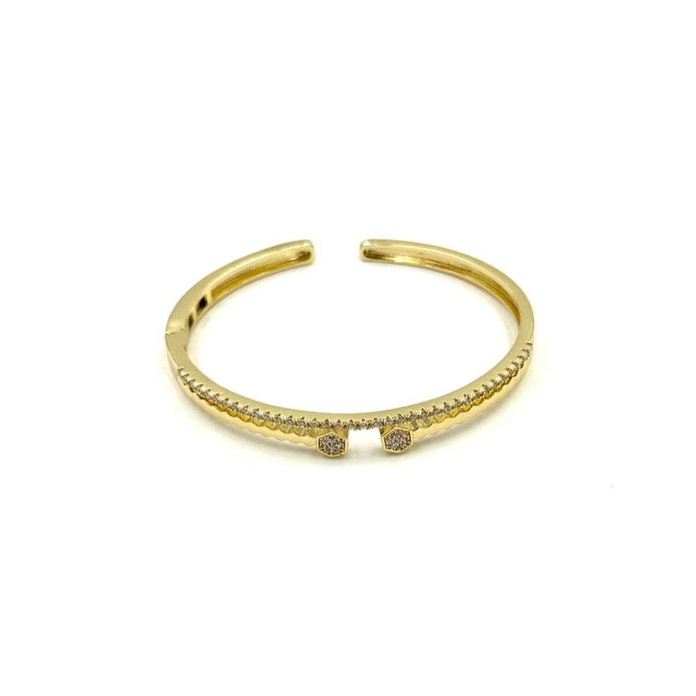 Ashley Gold Stainless Steel Gold Plated Double Row CZ Open Bangle Bracelet