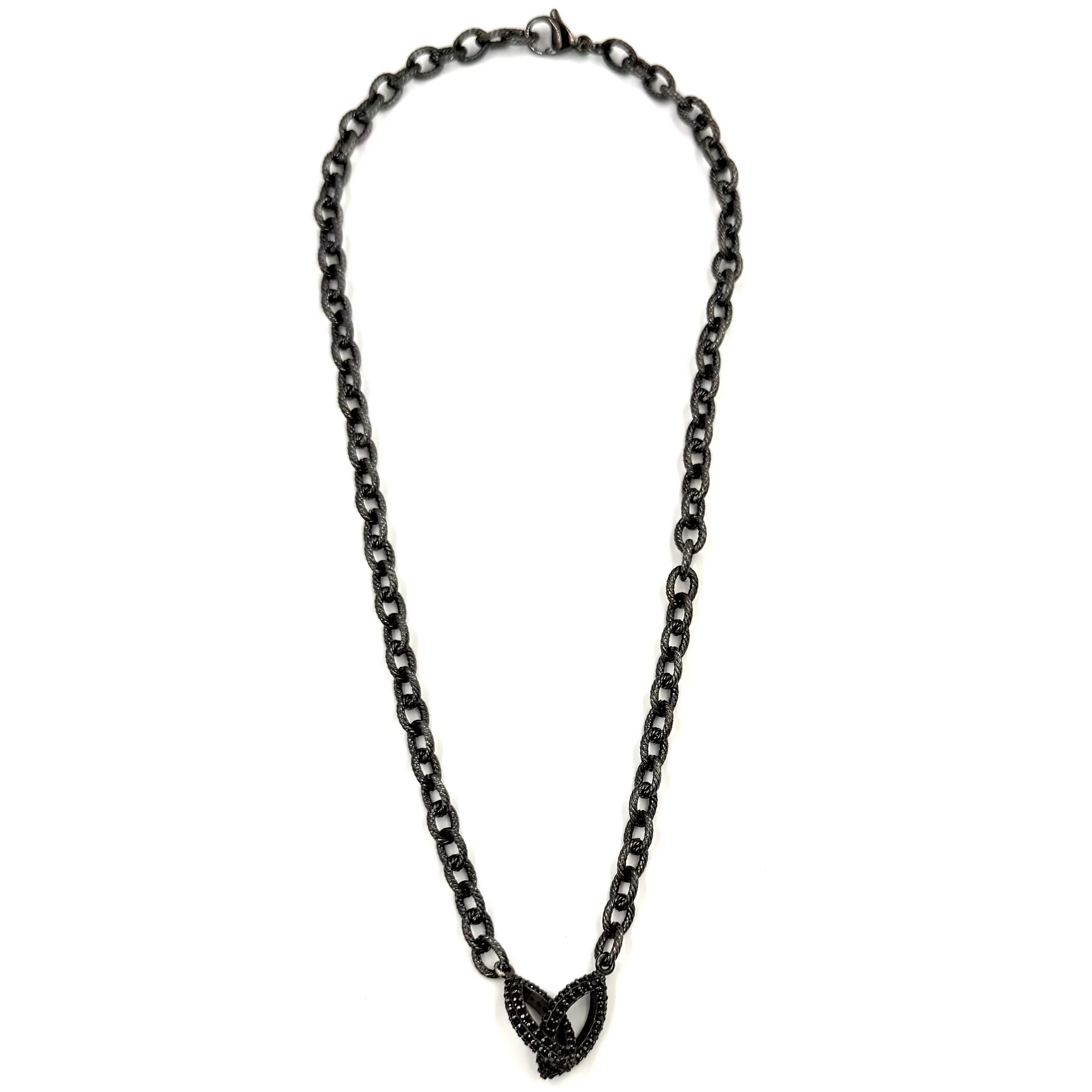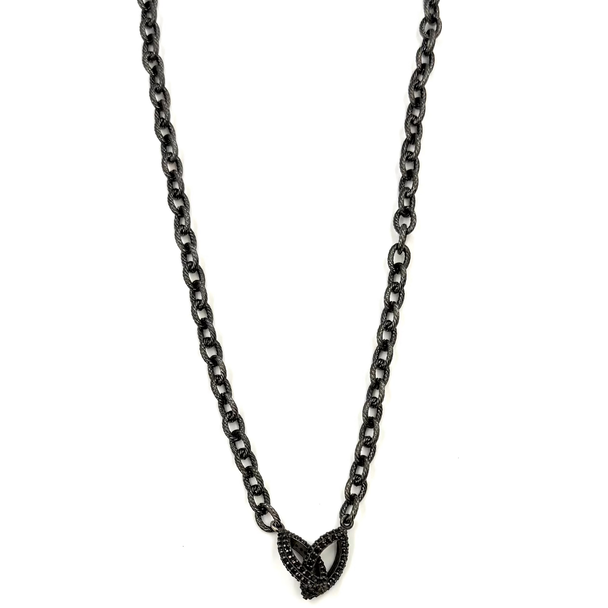 Ashley Gold Stainless Steel Gunmetal Rope Link Chain with CZ Gunmetal Sterling Silver Link Charm Necklace