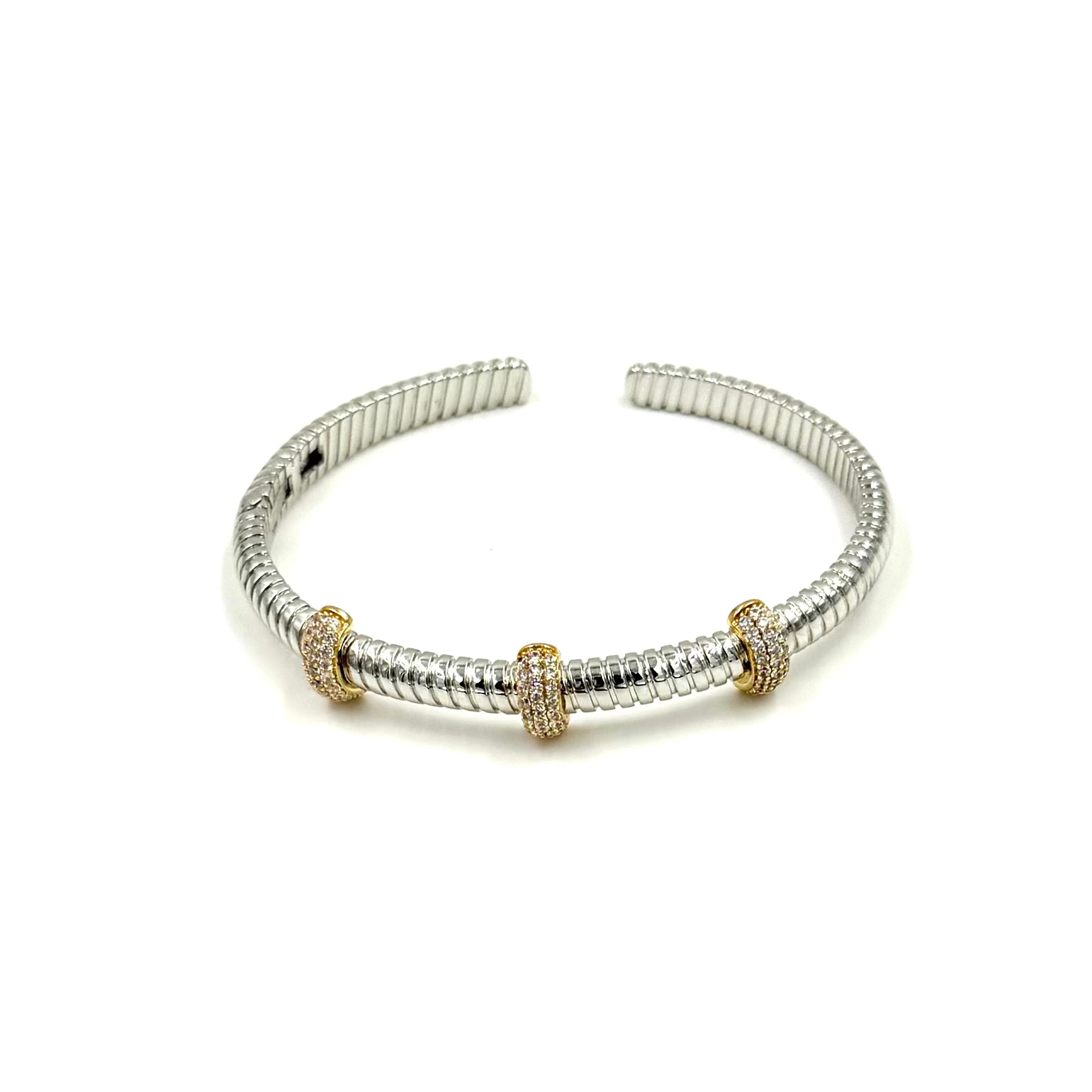 Ashley Gold Stainless Steel Spiral Design With Gold Plated 3 Bar CZ Bangle Bracelet